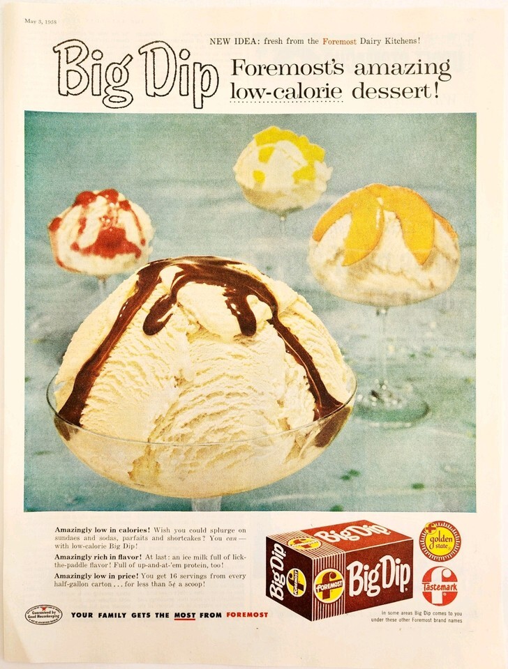 1958 Big Dip Ice Cream Golden State Advertisement Dessert Dairy Food DWII29