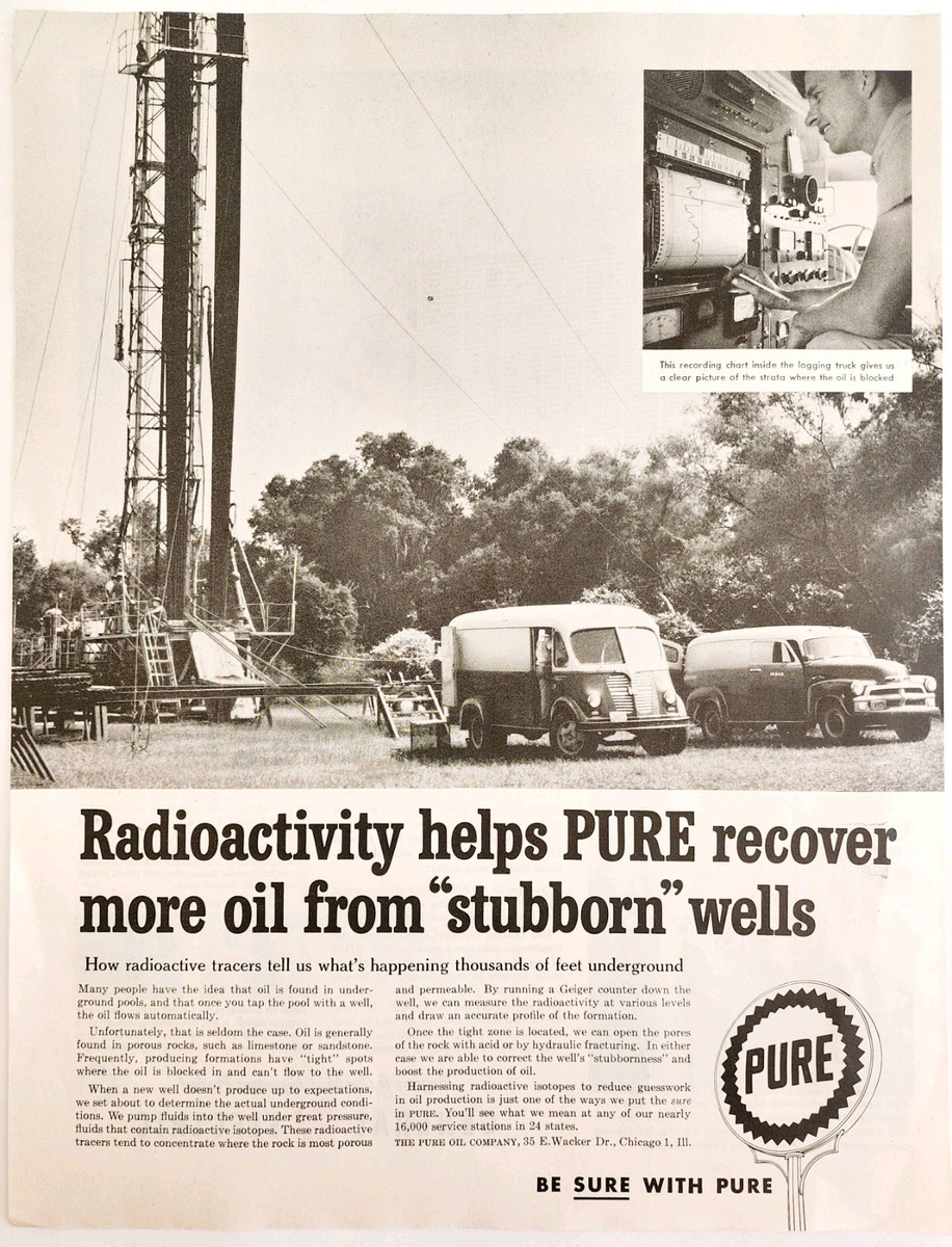Primary image for 1958 Pure Gasoline And Oil Industrial Advertisement Radioactivity Wells DWII29