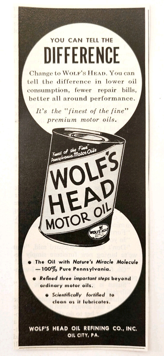 1958 Wolf's Head Motor Oil Advertisement Automobilia Refining Vintage E98F