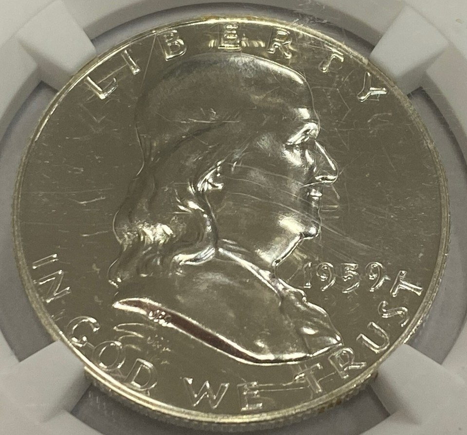 - 1959 50C Franklin Half Dollar Graded By NGC As PF67! Stunning Coin- show orig...