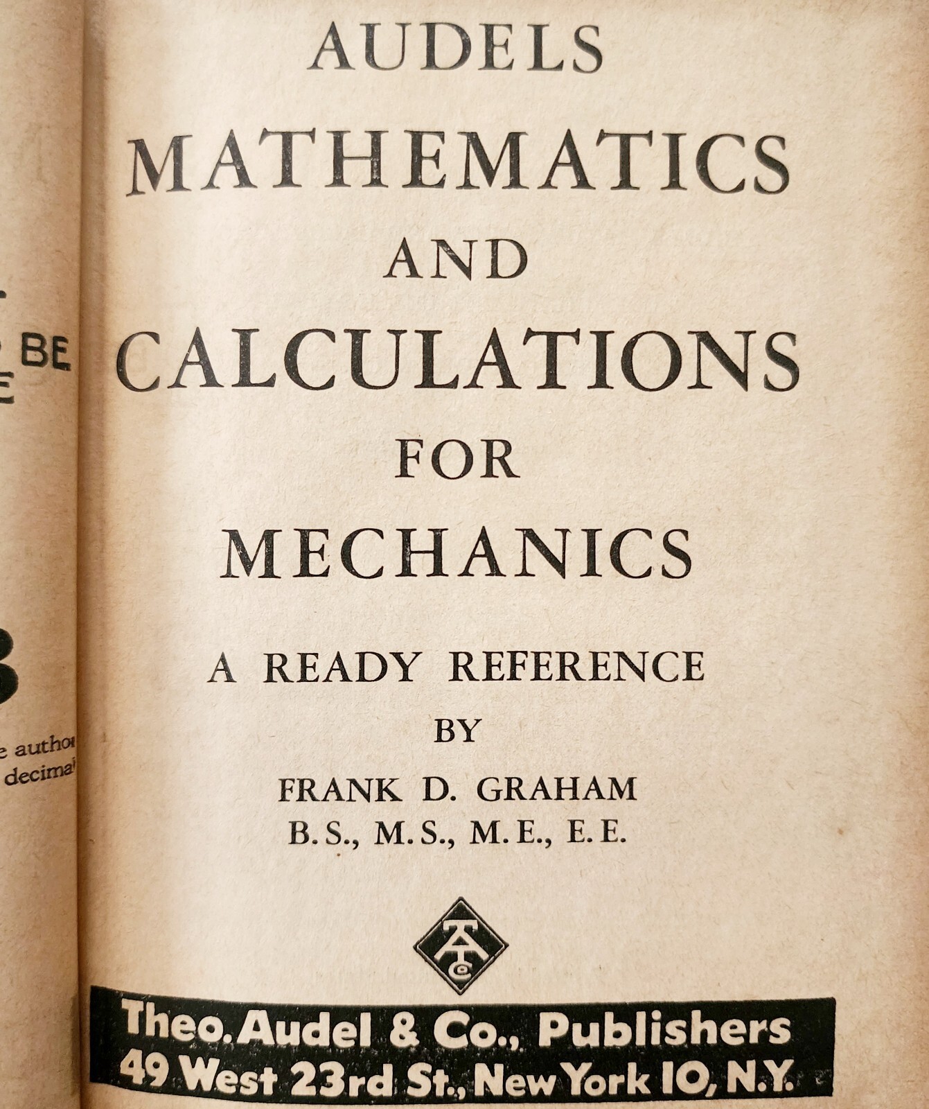 - 1959 Audels Mathematics & Calculations For Mechanics Illustrated HC Book E16