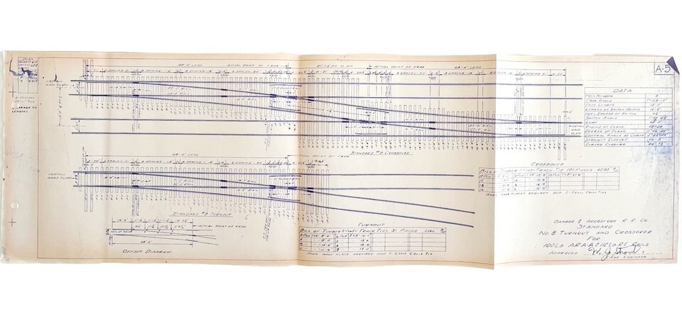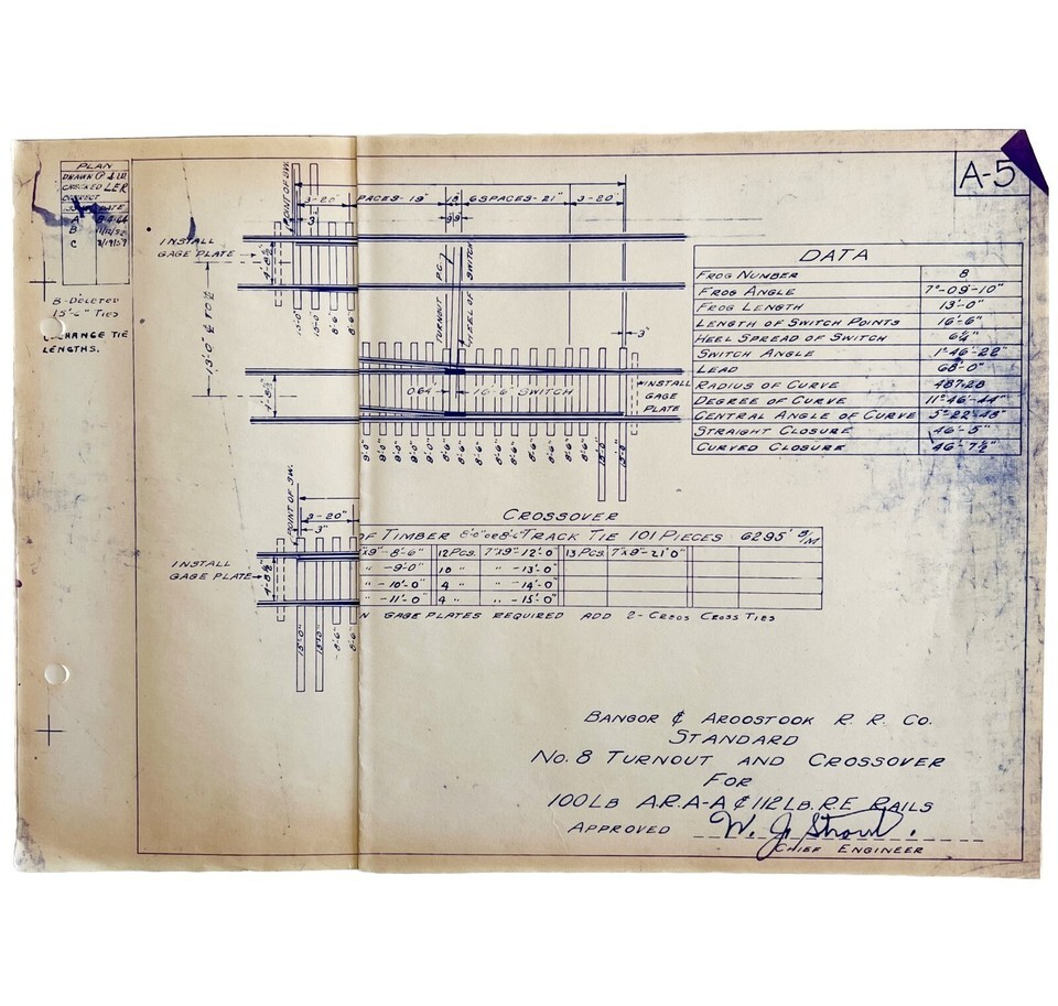 1959 Railroad Bangor Aroostook Original Blueprint #8 Turnout Crossover A5 DWDD11