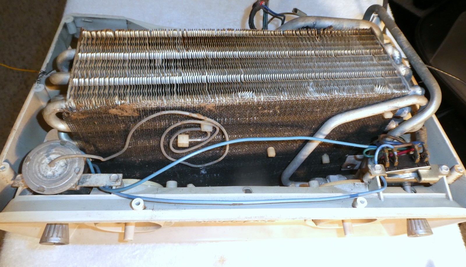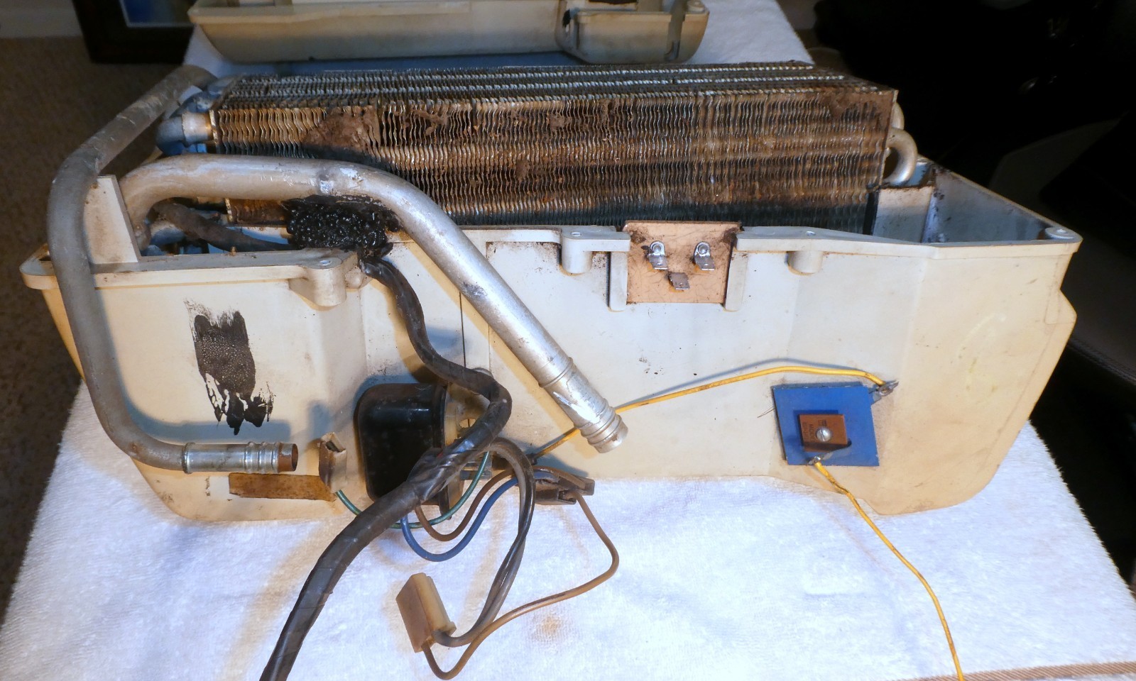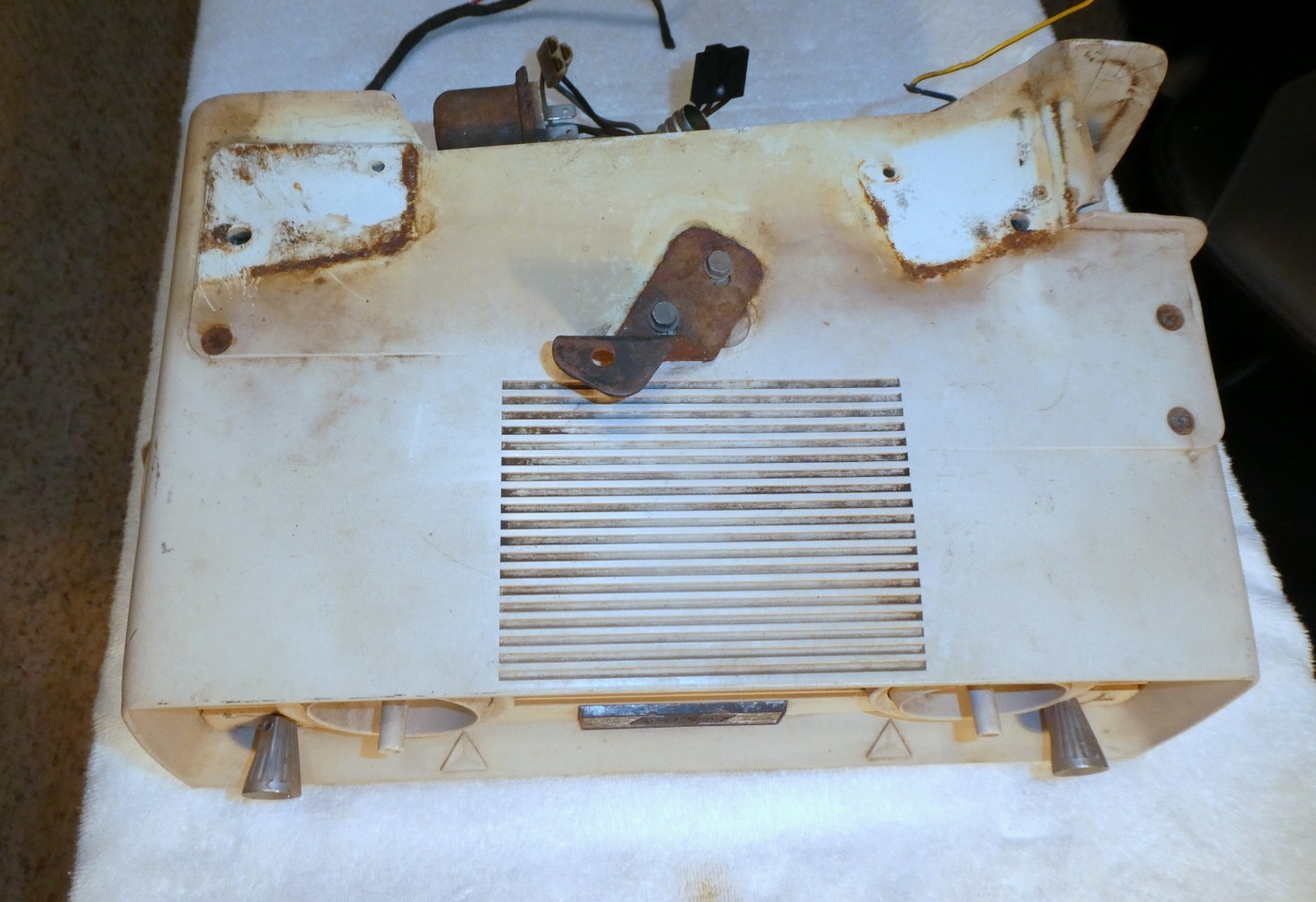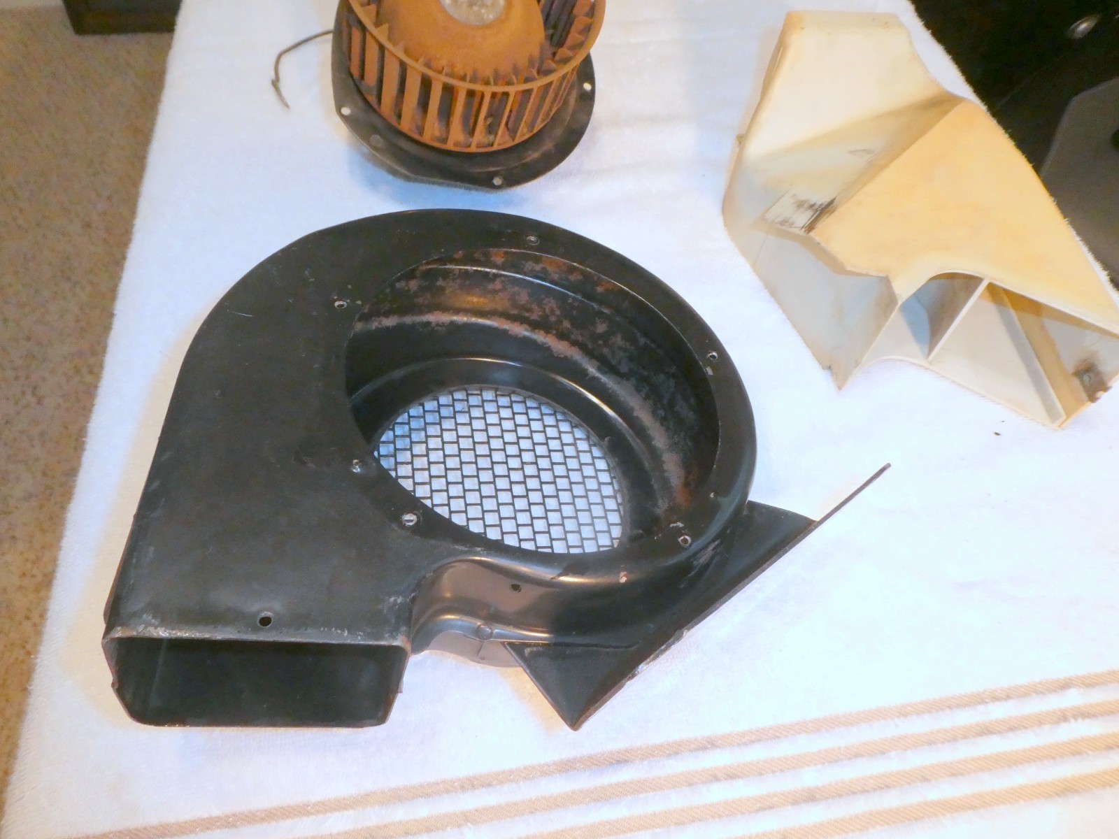 Nice 1960-1963 Chevrolet Cool Pack AC with Blower Motor. Includes the fan motor, fan Housing Squirrel Cage and the plastic AC duct. No cracks or breaks that I can see, fan motor has been tested and works fine. The AC temp and fan knobs turn mechanically not sure about the electrical function of the switches; they may or may not work properly. The evaporator core has not been tested for leaks, but it looks as though it's in good condition. The front and side vents rotate and adjust as they should. One of the side vents is missing as shown in the pictures.
