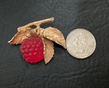 1960 Napier Framboise Broche Rouge Or Ton Verre Feuilles Branch 1.5 Inches