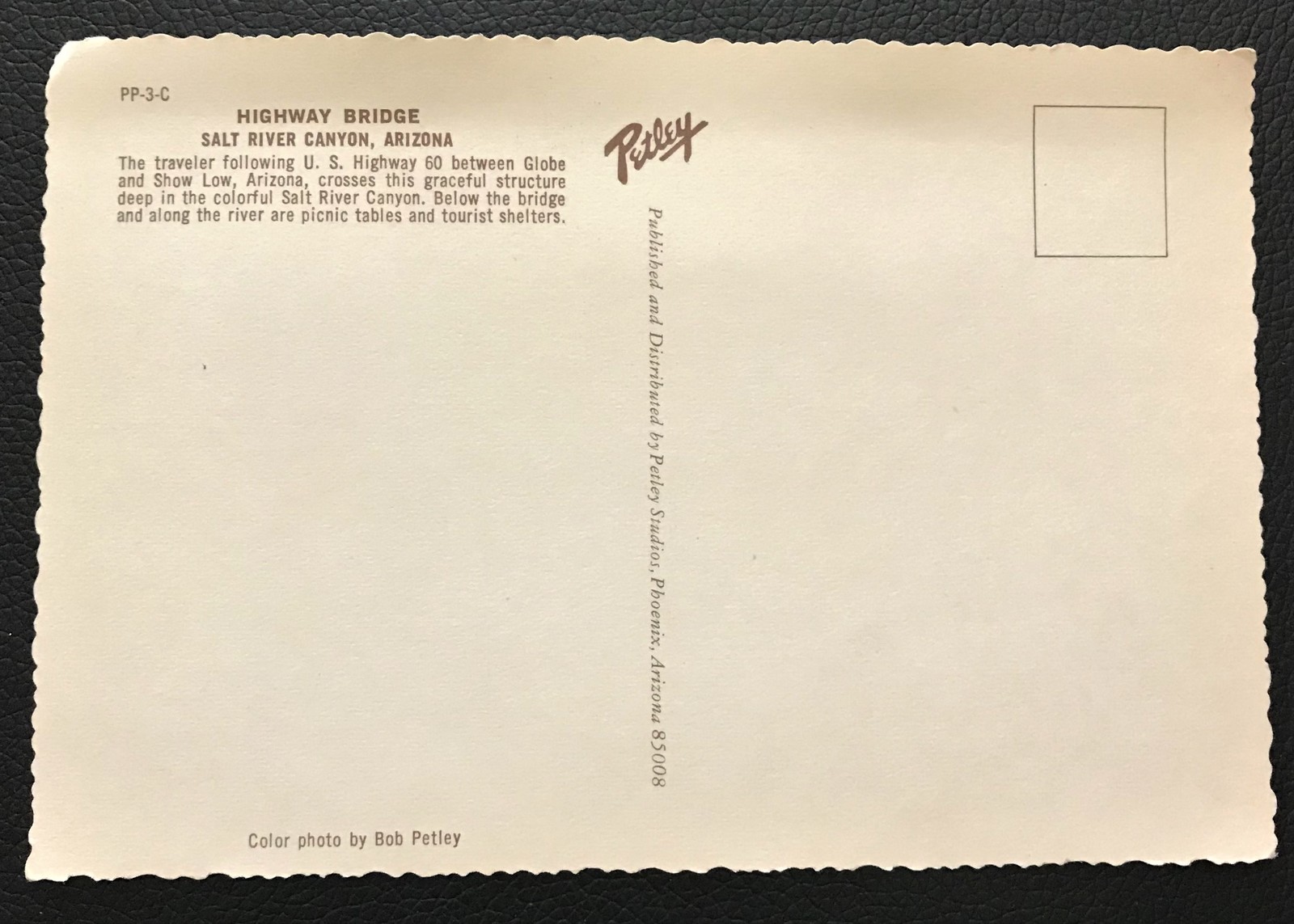 1960's Petley Die-Cut Postcard - Highway Bridge Salt River Canyon Arizona