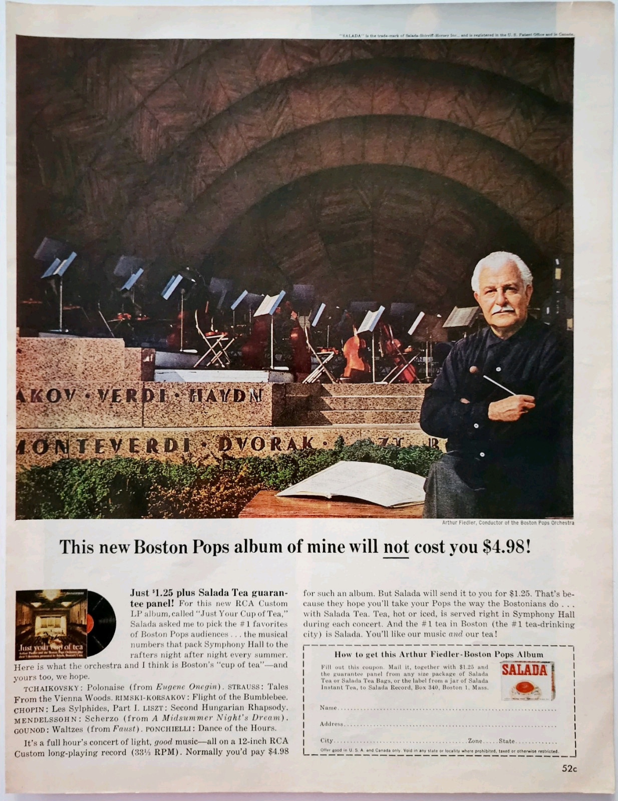 1961 Arthur Fiedler Boston Pops Orchestra Advertisement Salada Tea DWII32