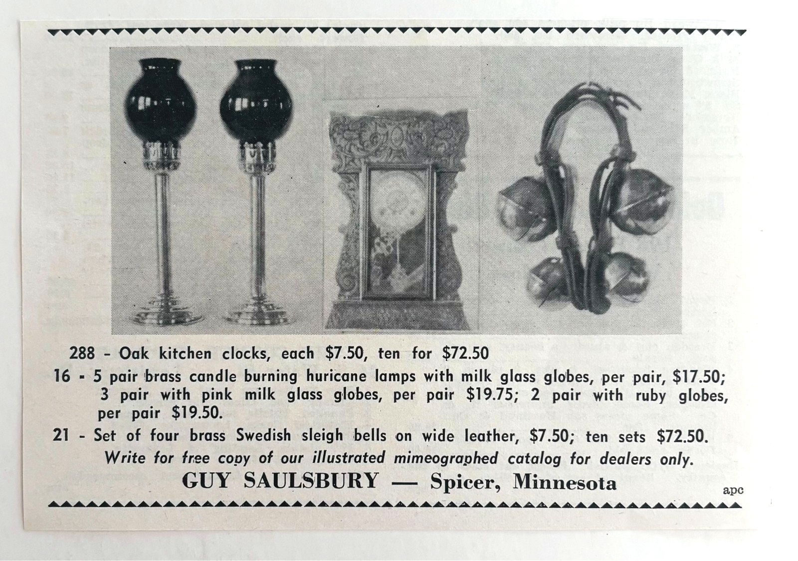 1961 Guy Saulsbury Antiques Shop Advertisement Spicer Minnesota Vintage F14D