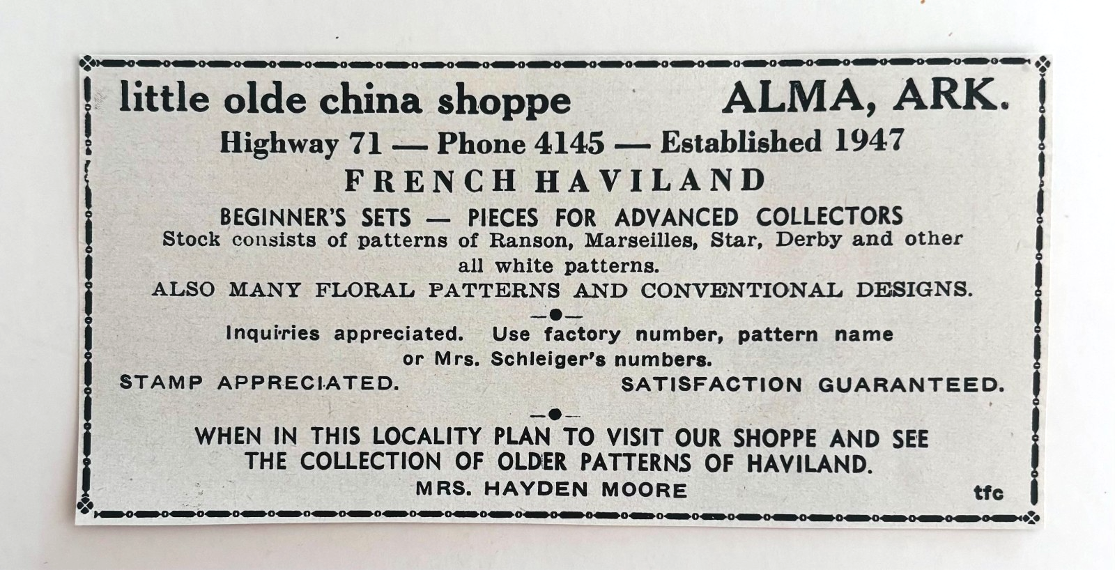 1961 Little Olde China Shoppe Antiques Advertisement Alma Arkansas F14D