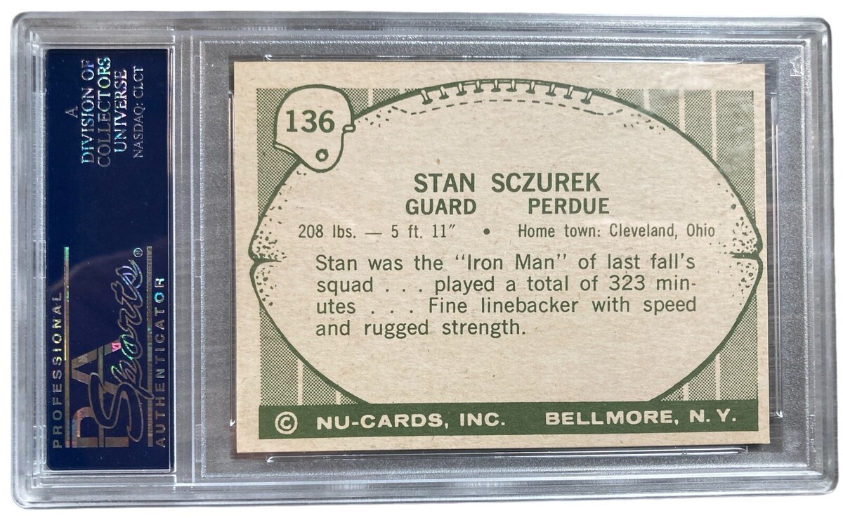 1961 Nu-Card football card #136 Stan Sczurek Purdue Boilermakers graded PSA 9
