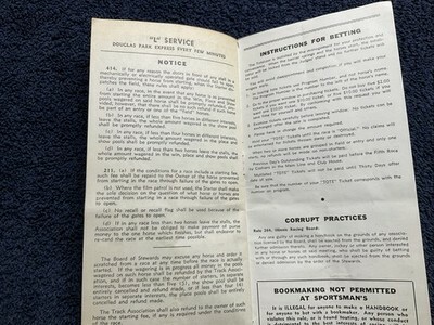 1961 Sportsman's Park Horse Racing Track, Cicero IL OFFICIAL PROGRAM