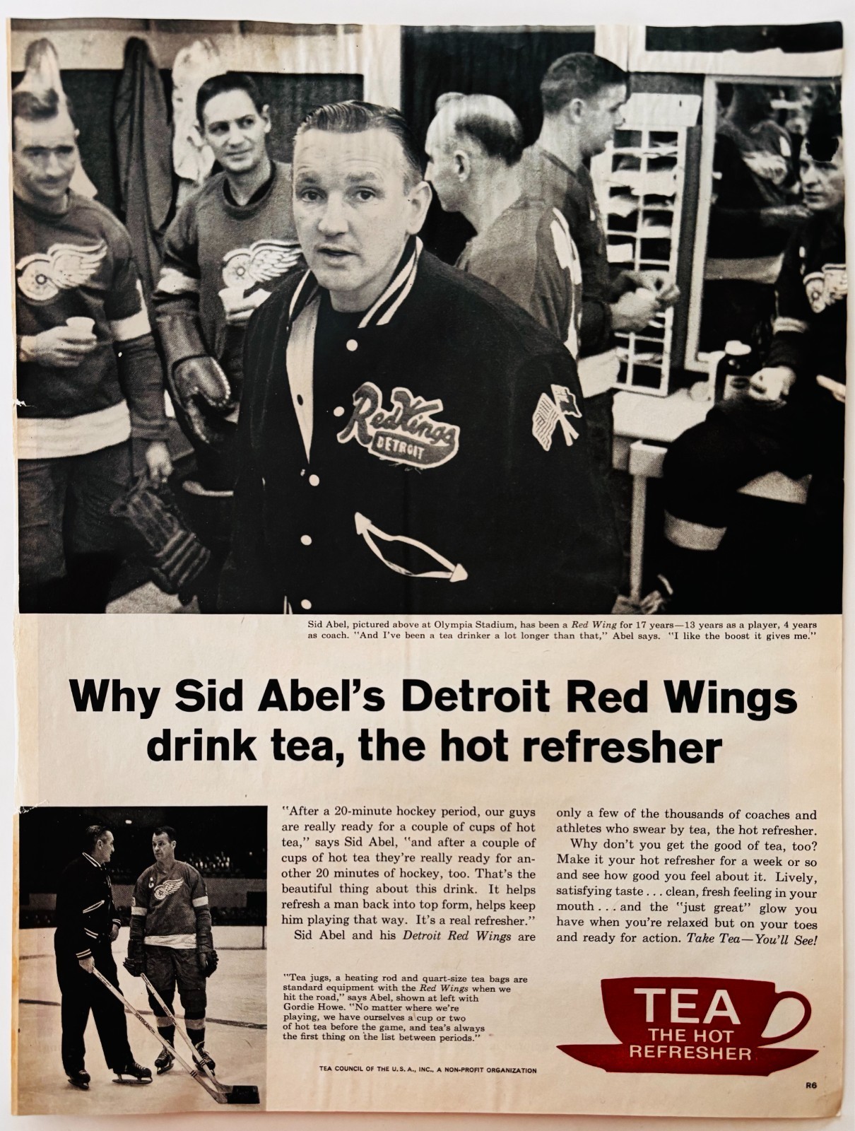 1962 Sid Abel Detroit Red Wing Tea Cigarettes Advertisement Hockey NHL DWXX3