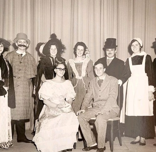 1963 Maskeraders Real Photo Maskers Play Theater Gentleman Upstairs NH E88N