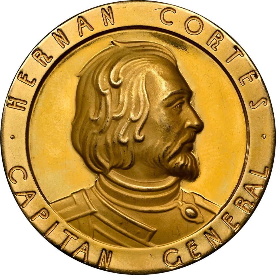 - 1963 Mexico Gold Medallion Cortes & Cuauhtemoc Grove-P-77 NGC MS64 PL