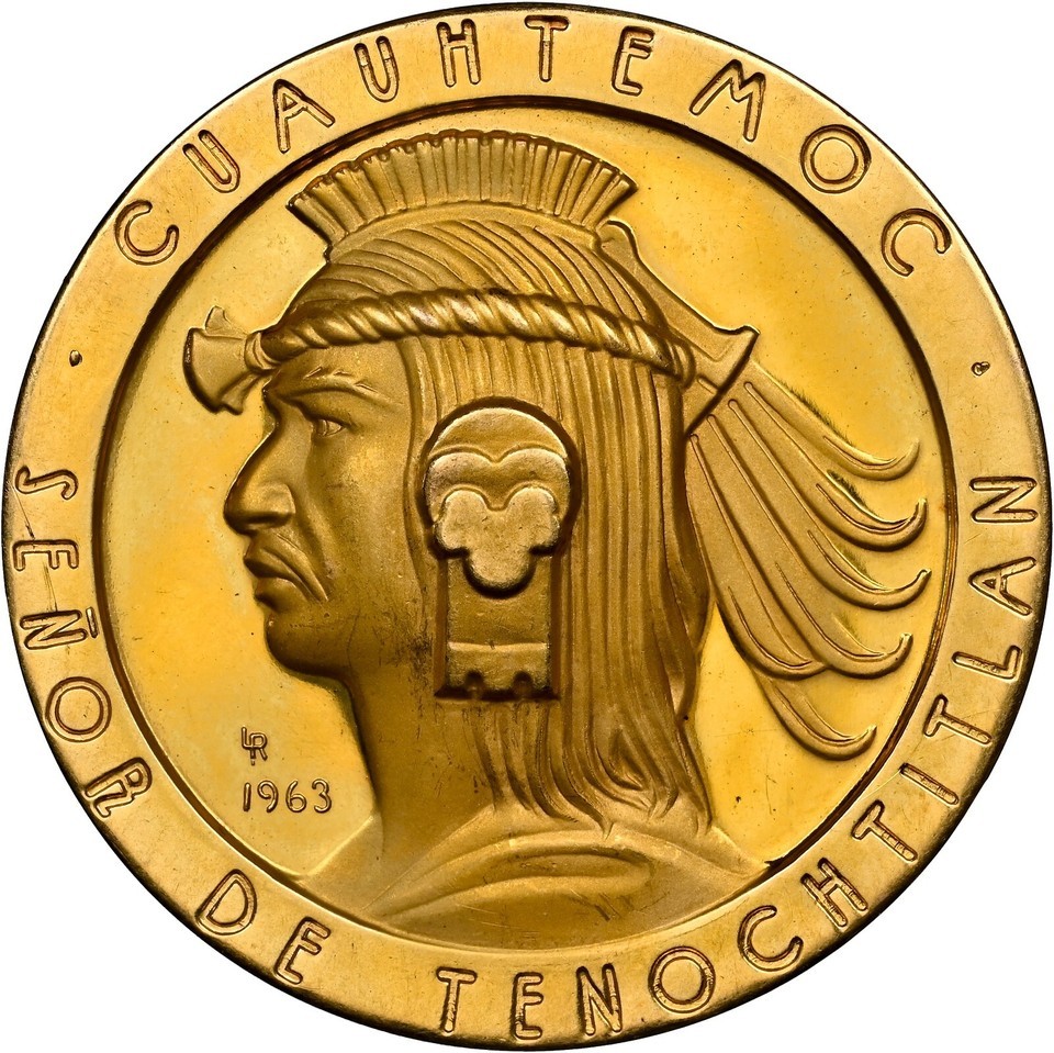 1963 Mexico Gold Medallion Cortes Cuauhtemoc Grove-P-77 NGC MS64 PL