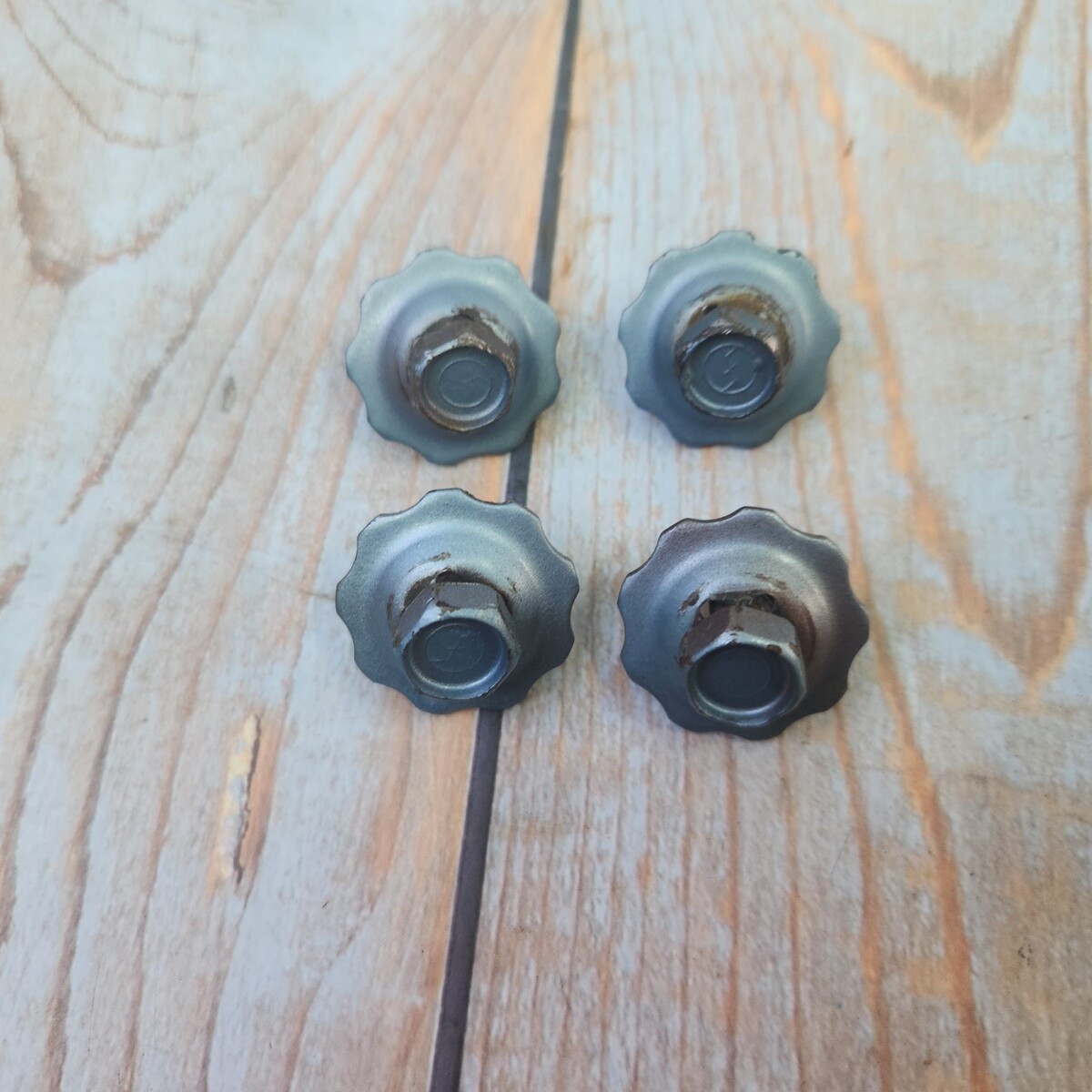 1963 Oldsmobile Cutlass F85 4pc Blue Trunk Lid Bolts 1/2 in Hex w Flower Washers