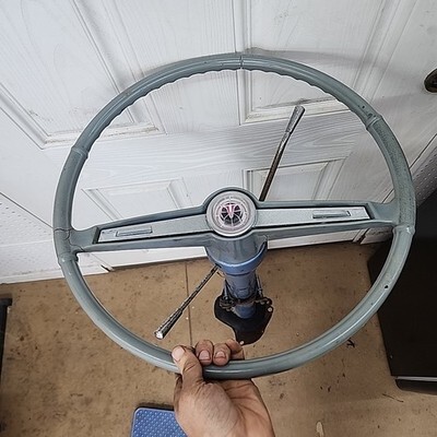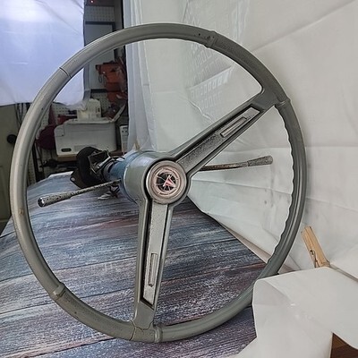 Exact item is shown. This was removed from a 1963 Oldsmobile Cutlass F85. It is being sold for parts / as is. Includes any accessories shown. Steering wheel is cracked. Firewall bracket is bent and damaged. 16 inch diameter steering wheel, overall length 43 inches, weight 22 lbs. Made in USA. Likely suitable for other models. Please review our business policies in our store for information regarding returns, shipping and warranties.