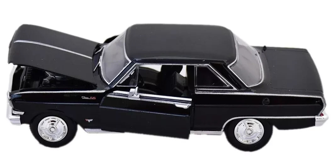 This model ships in a generic box. This model of the 1964 Chevy Nova SS is about 7.75 inches long, 3 inches wide and 2.25 inches high. It is highly detailed with glossy body paint and accurate markings. Doors and hood can open. This is not a toy. It is a collector's model recommended for 15 and older. The Chevrolet Chevy II/Nova is a small automobile manufactured by Chevrolet, and produced in five generations for the 1962 through 1979, and 1985 through 1988 model years. Built on the X-body platform, the Nova was the top selling model in the Chevy II lineup through 1968. The Chevy II nameplate was dropped after 1968, with Nova becoming the nameplate for all of the 1969 through 1979 models. It was replaced by the 1980 Chevrolet Citation introduced in the spring of 1979. The Nova nameplate returned in 1985, produced through 1988 as a S-car based, NUMMI manufactured, subcompact based on the front wheel drive, Japan home-based Toyota Sprinter.