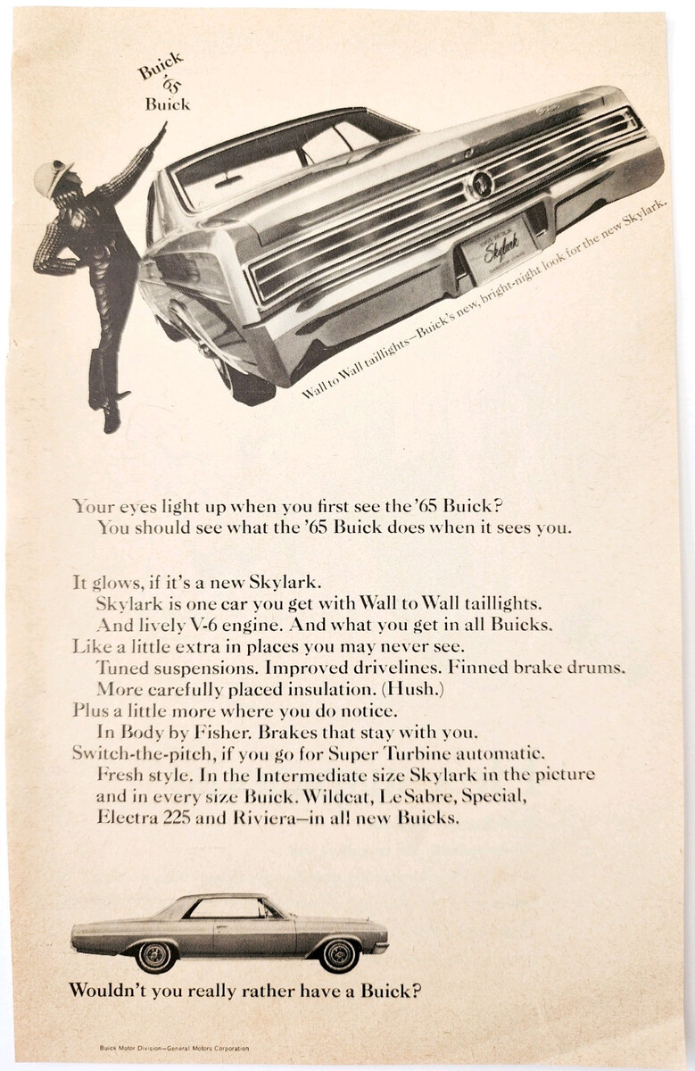 1965 Buick Skylark Advertisement Automobilia Classic Car General Motors DWQQ11