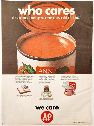1966 A&P Tomato Soup Advertisement Canned Foods Ann Page We Care DWLL9
