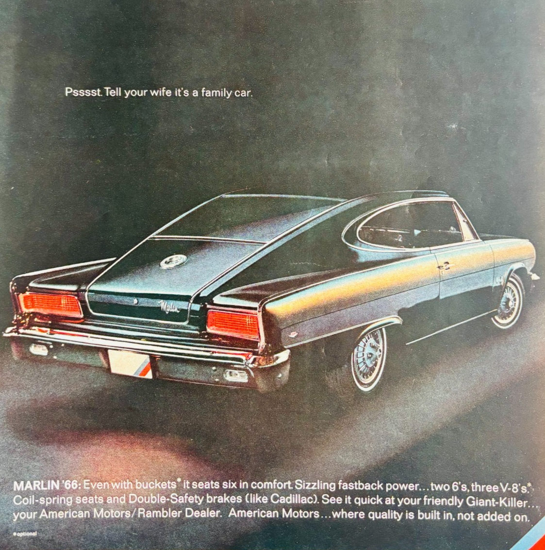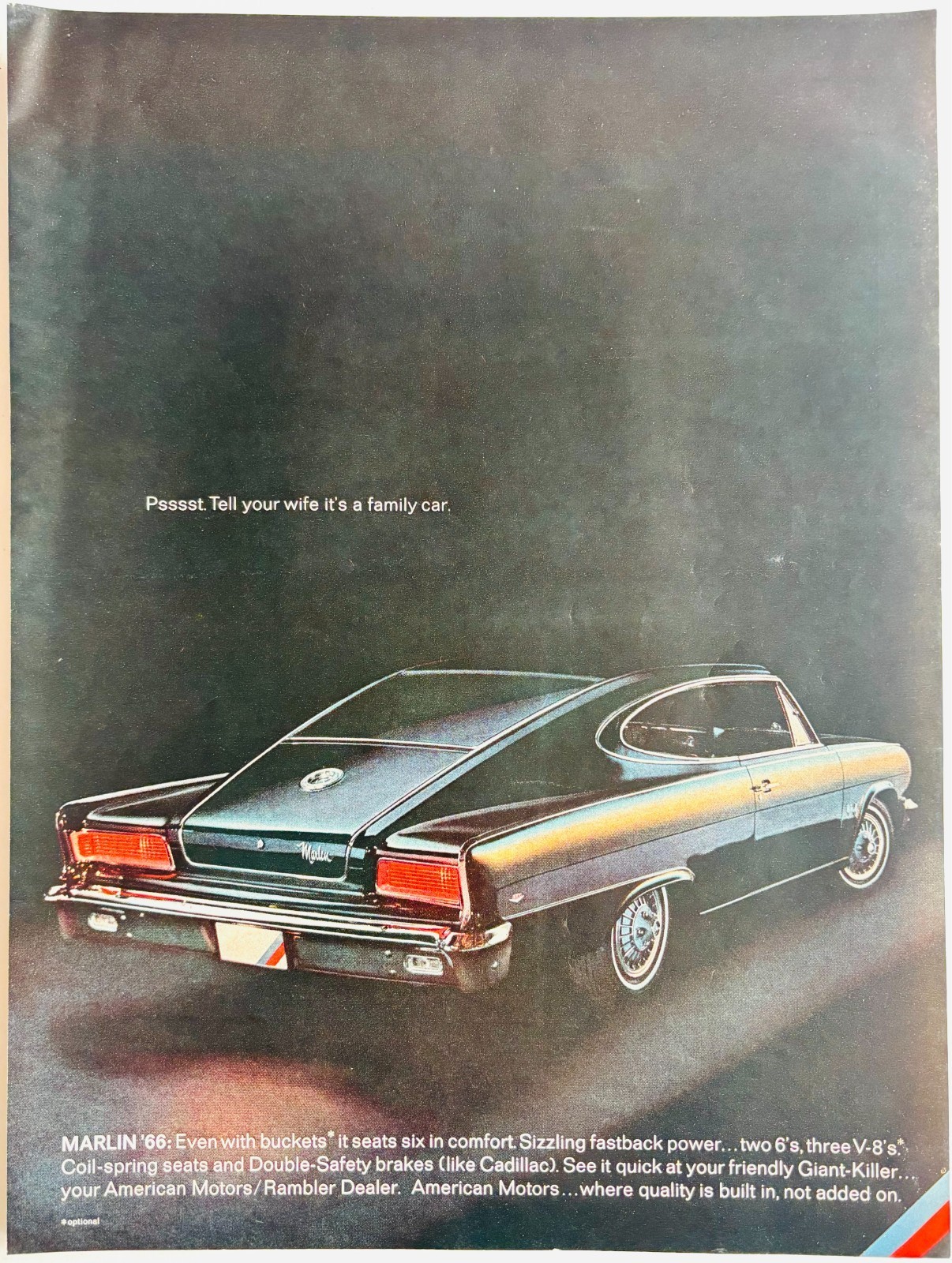 1966 American Motors Marlin Advertisement Vintage Automobilia Fastback DWYY1