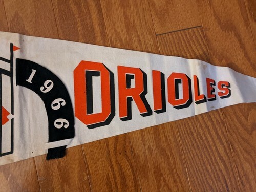 Up for sale is a 1966 Baltimore Orioles Os Baseball Team Picture Pennant Full Size in poor condition.