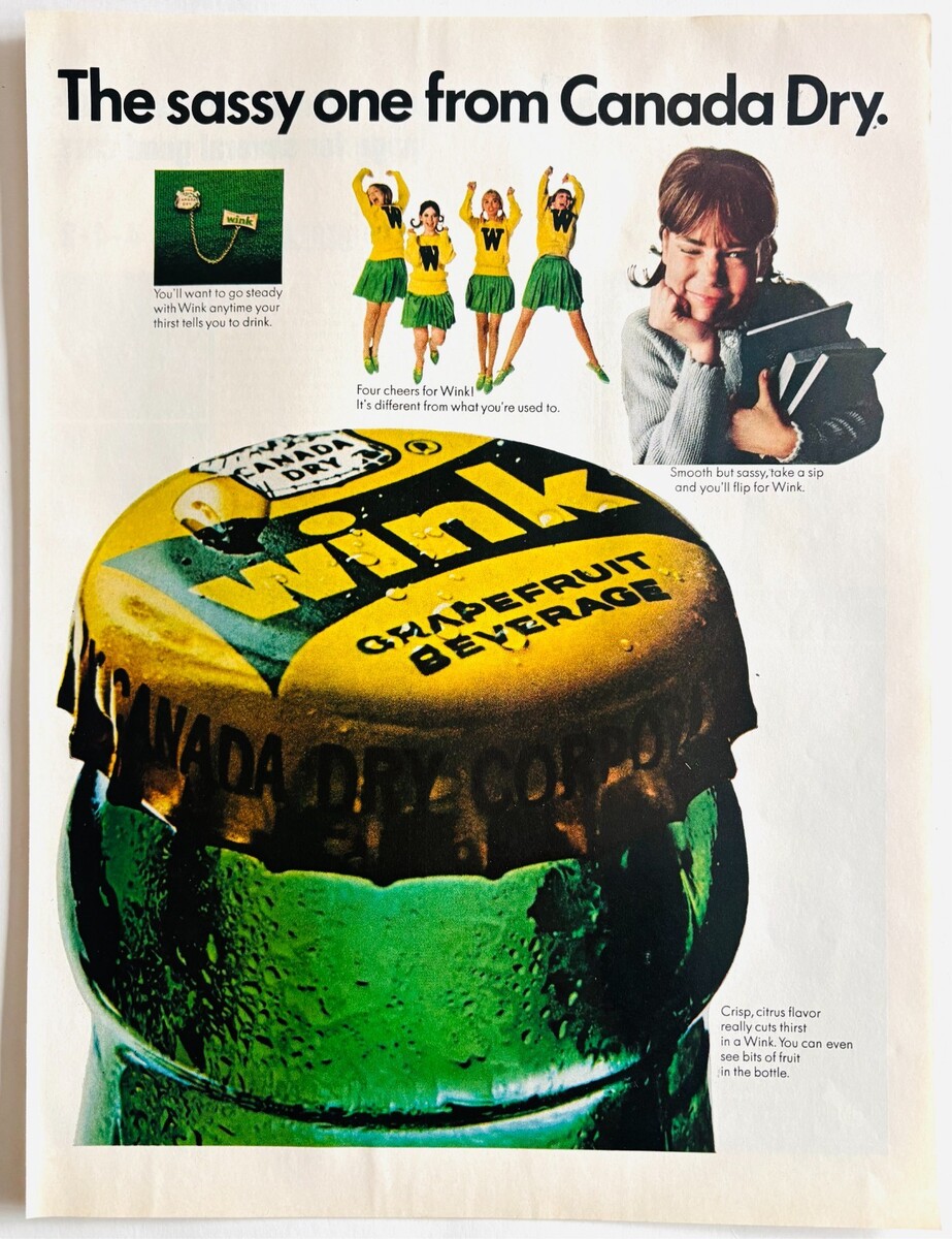 1966 Canada Dry Wink Soda Advertisement Vintage Grapefruit Pop Beverage DWYY2