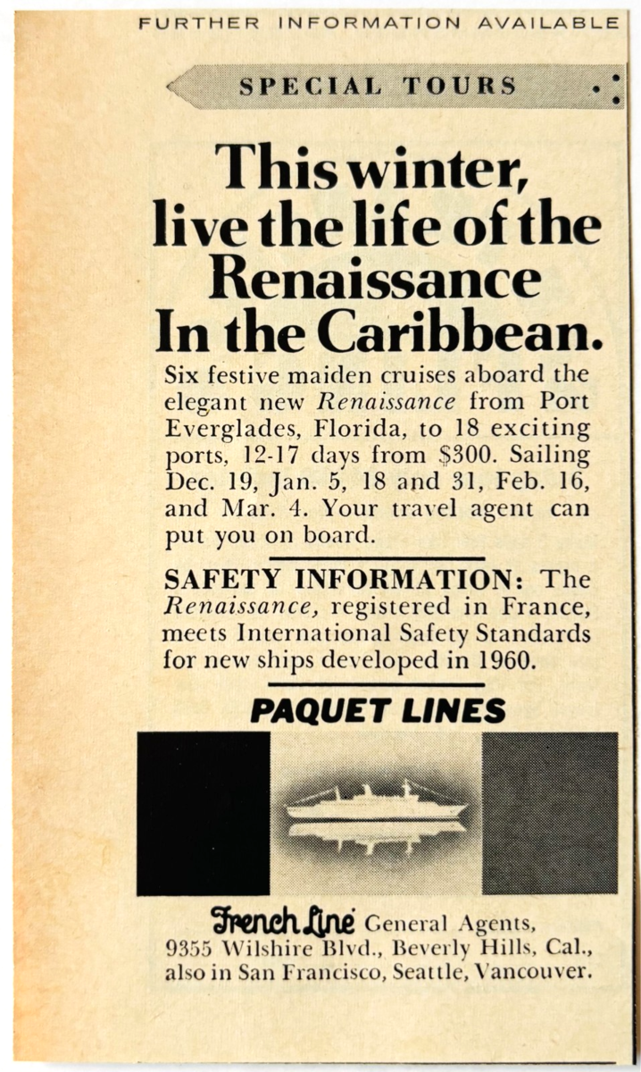 Primary image for 1967 Paquet Cruise Lines Advertisement Vintage Caribbean French Line F6M