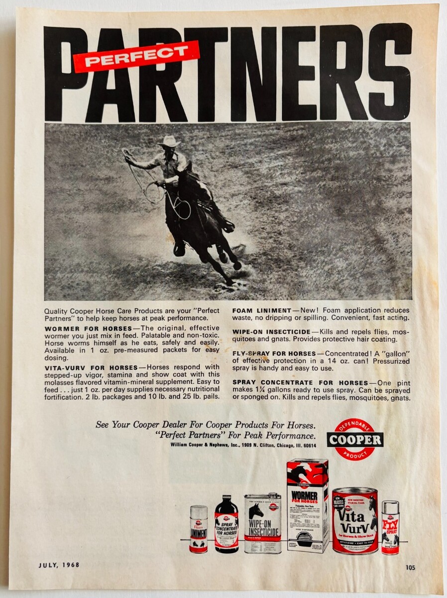 1968 Cooper Horse Care Products Advertisement Medical & Insect Protection DWP9C