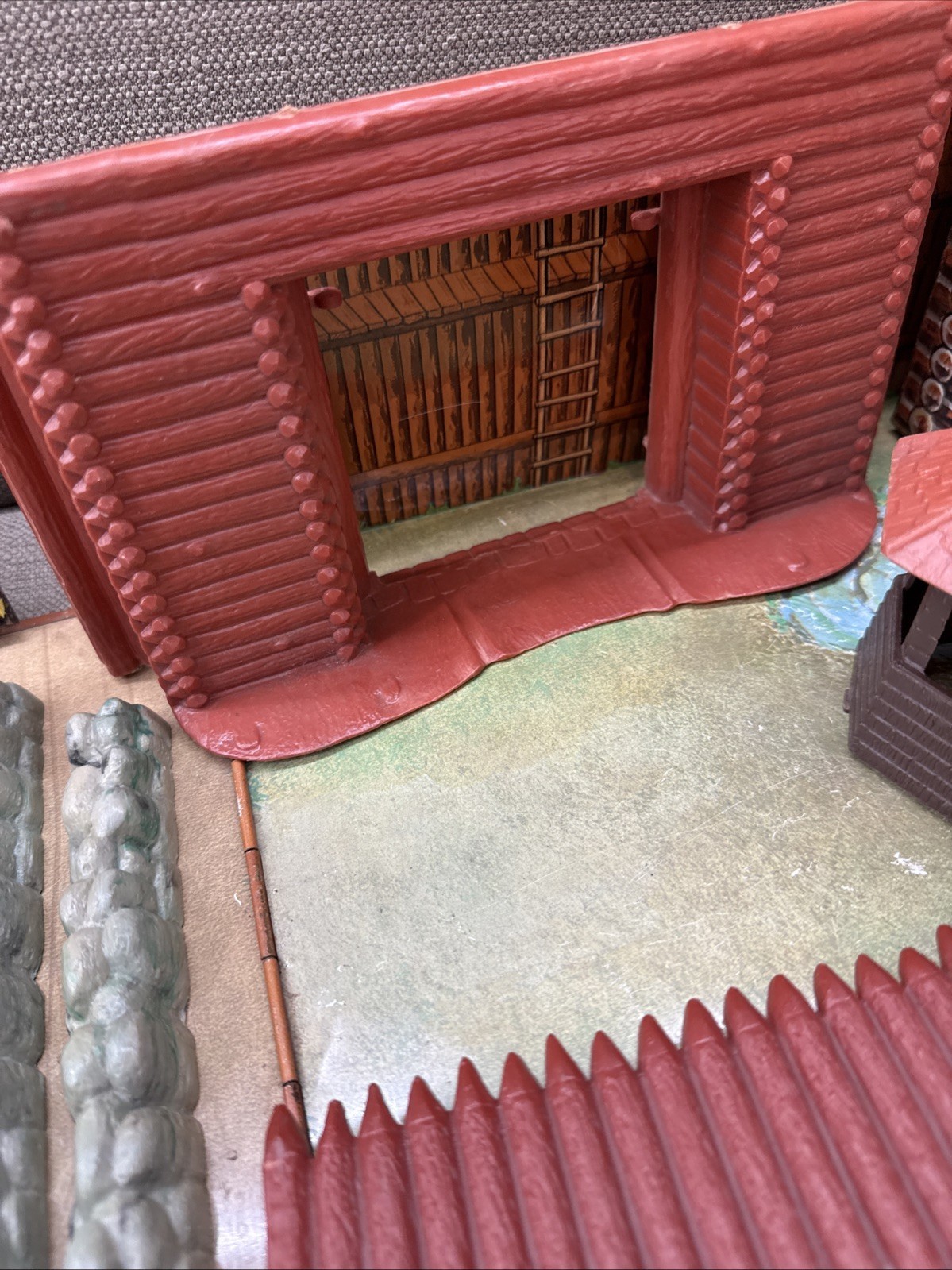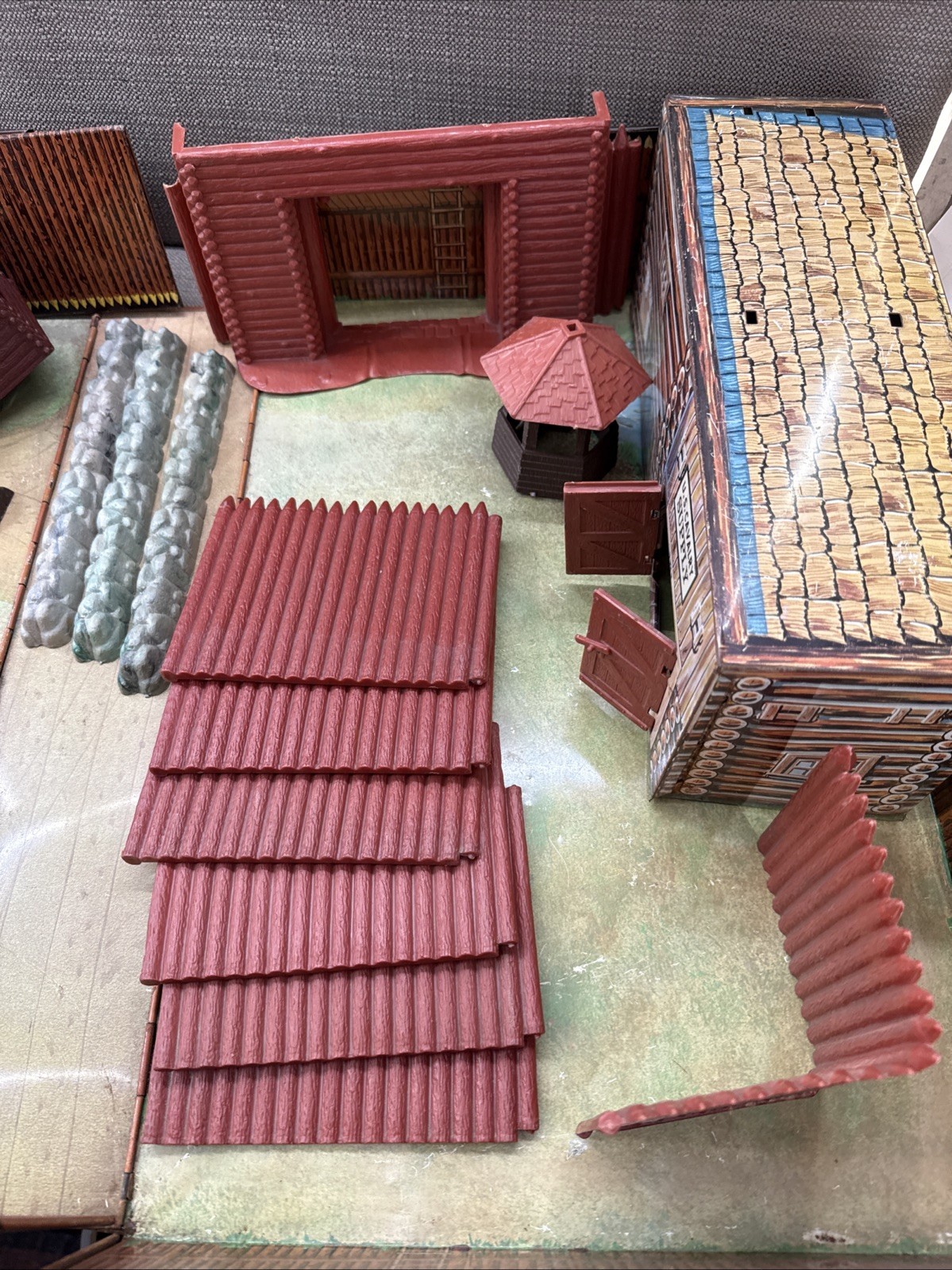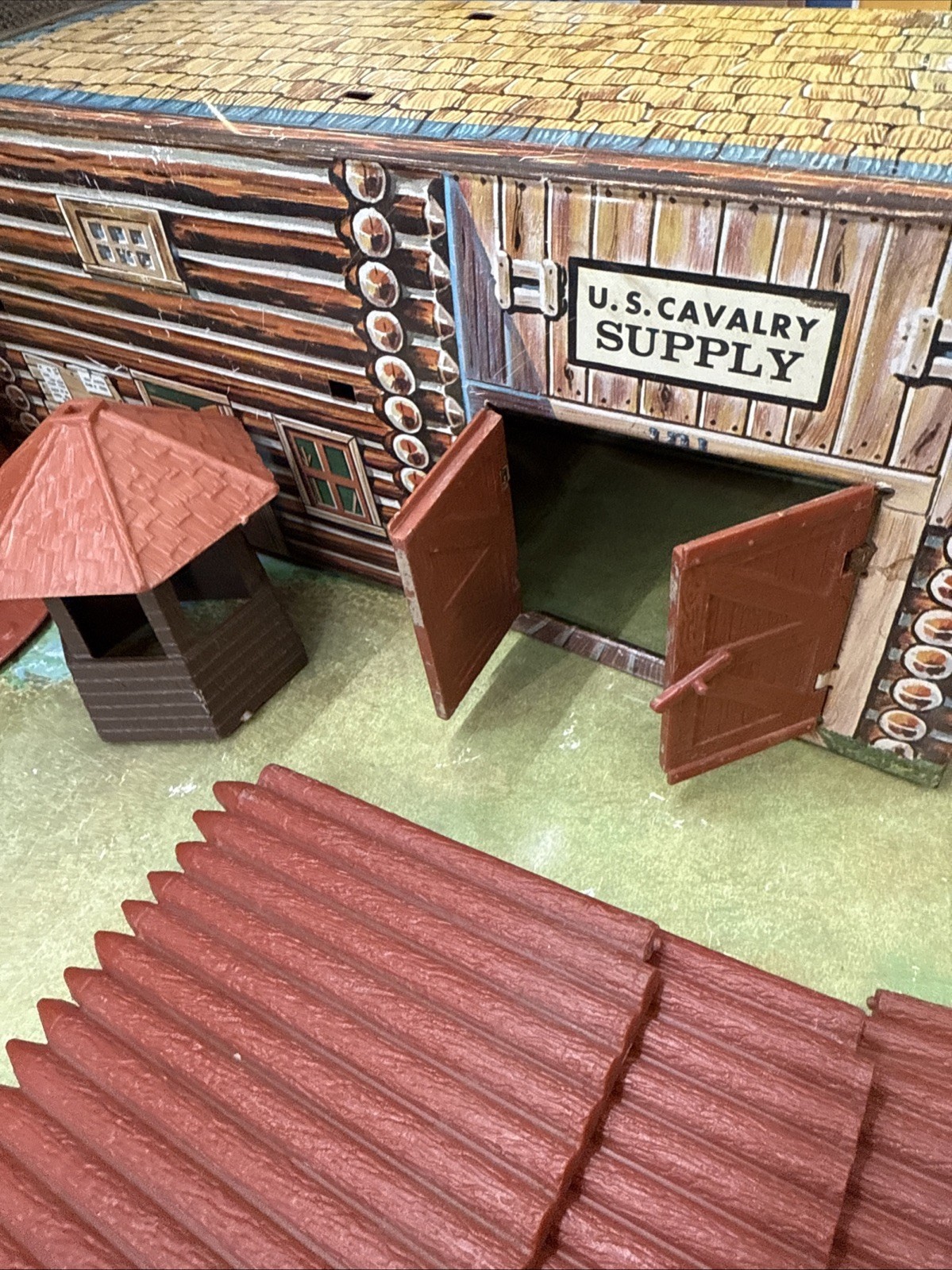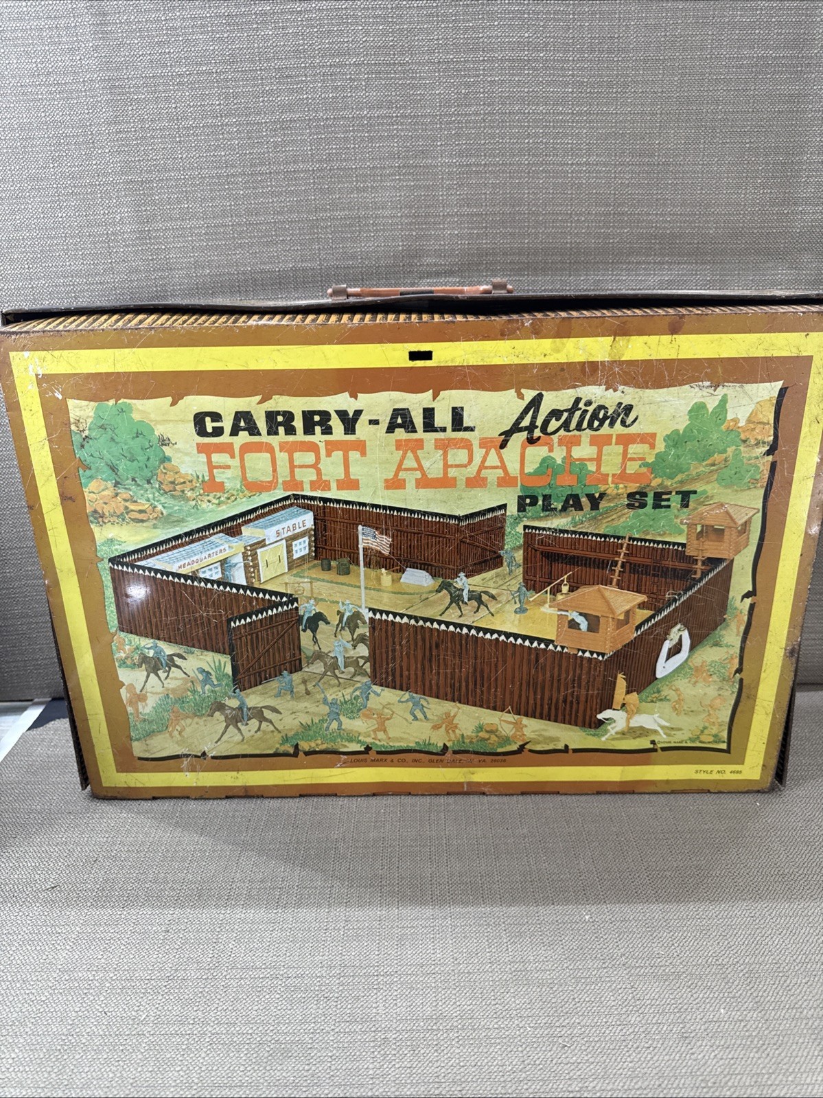 1968 Marx Fort Apache Carry-All Playset #4685 Tin Litho Western Toy Set Cowboy