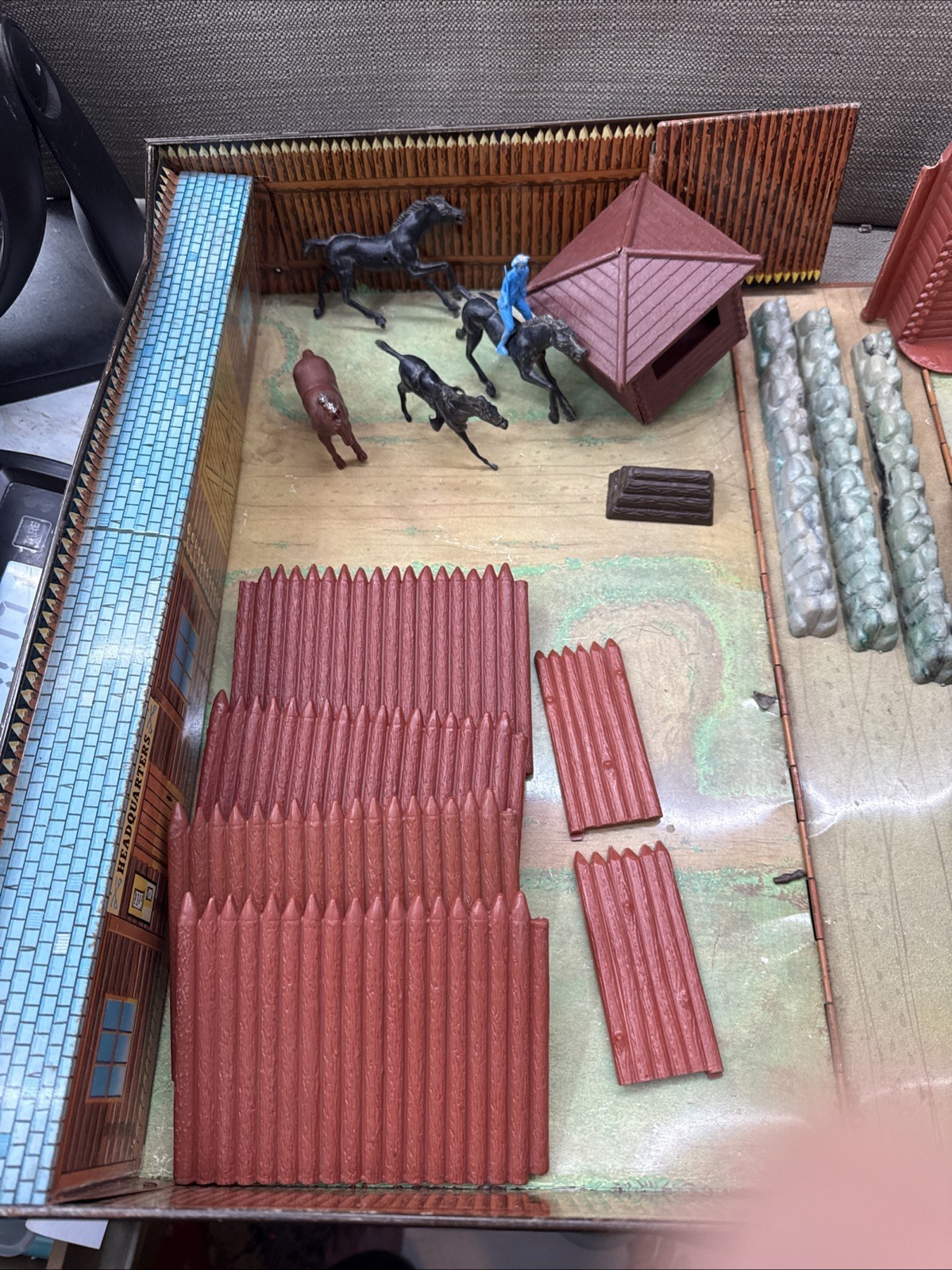 - 1968 Marx Fort Apache Carry-All Playset #4685 Tin Litho Western Toy Set Cowboy