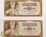 1968 Yugoslavia 2 PC 10 Dinar notas Lote (UNC) Condicion no circulada