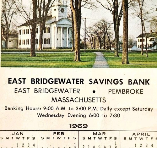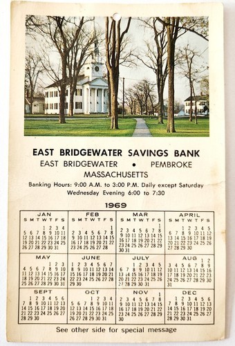 1969 East Bridgewater Savings Bank 12 Month Calendar Card Massachusetts C82QST