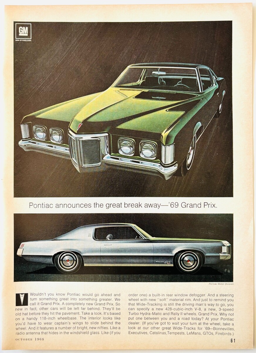1969 Pontiac Grand Prix Advertisement Vintage Automobilia Wide Track DWW11B