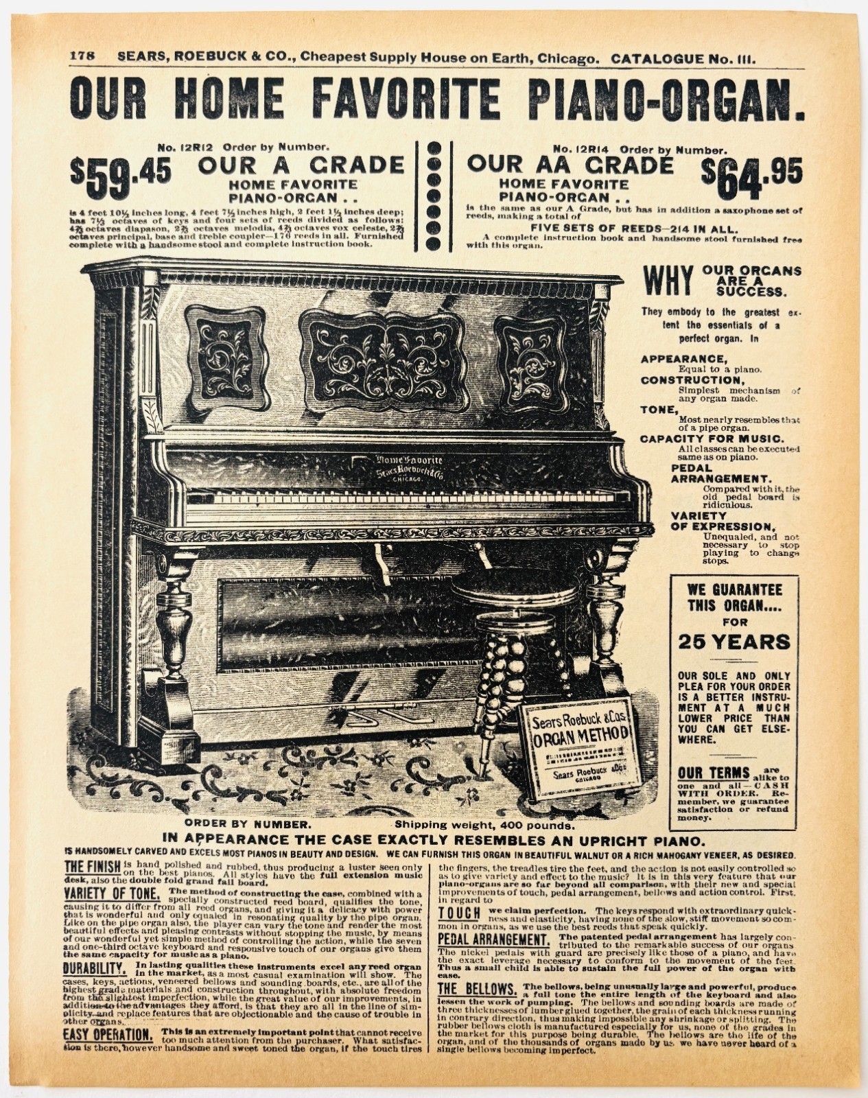 This is an ad reproduced in 1969 of the original 1900s Sears ad....not by me..by Sears.
