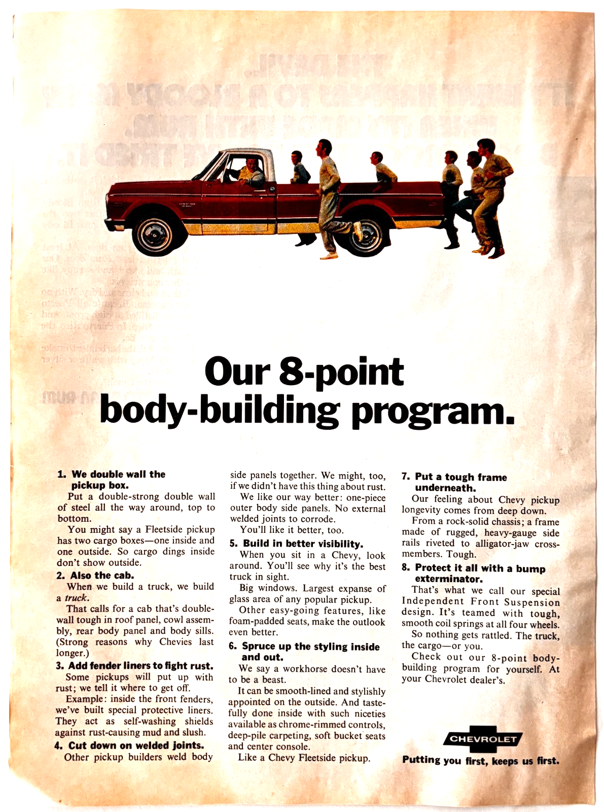 1970 Chevrolet Fleetside Pickup Advertisement Vintage Automobilia Truck F15O
