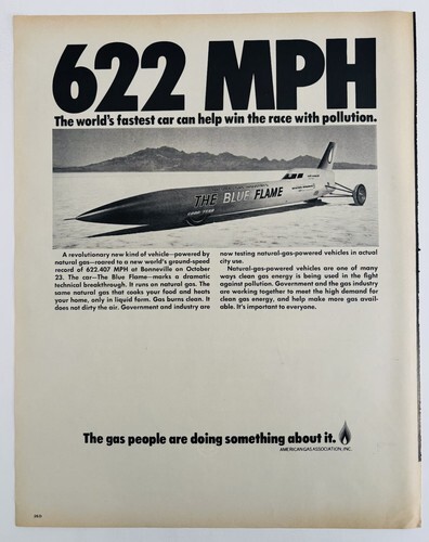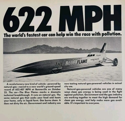 1970 Goodyear Blue Flame Fastest Car Advertisement Natural American Gas DWII17