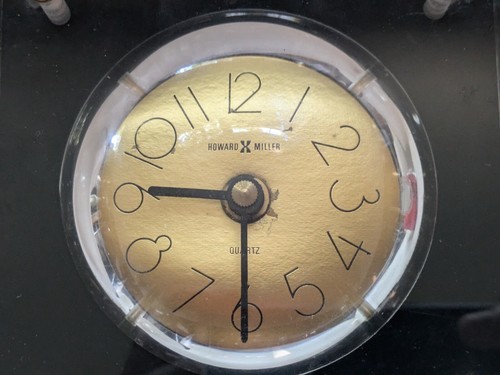 - 1970 Howard Miller Lucite Bloc Bureau Table Horloge Or Cadran Visage Mcm Travail