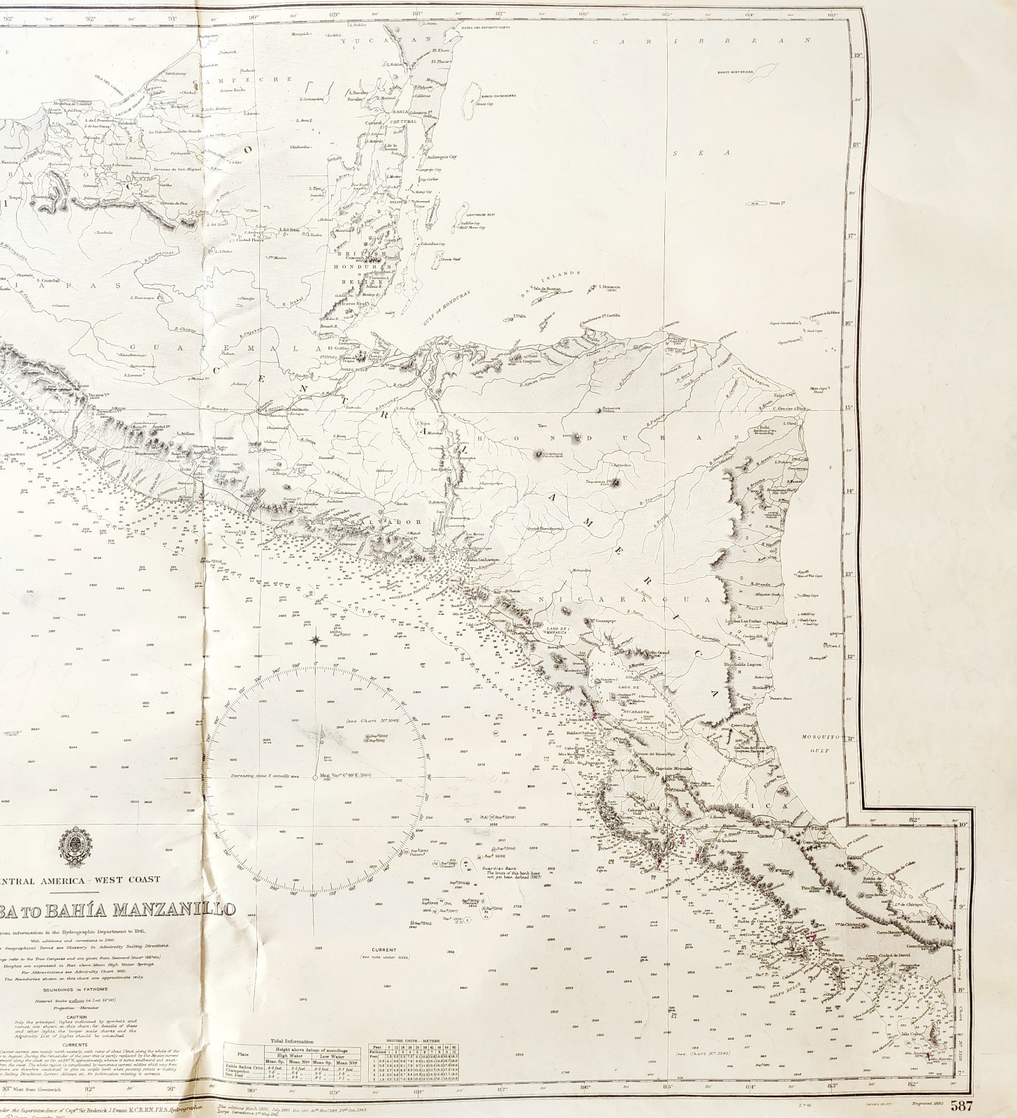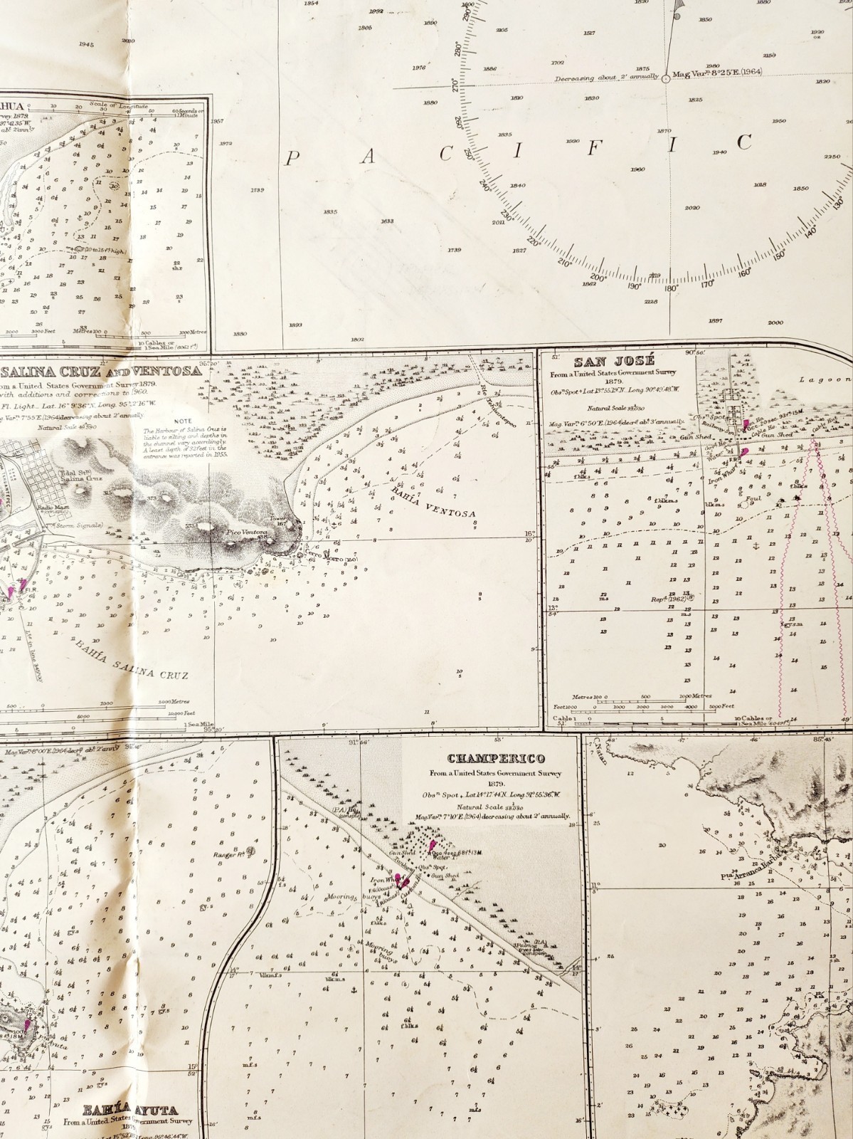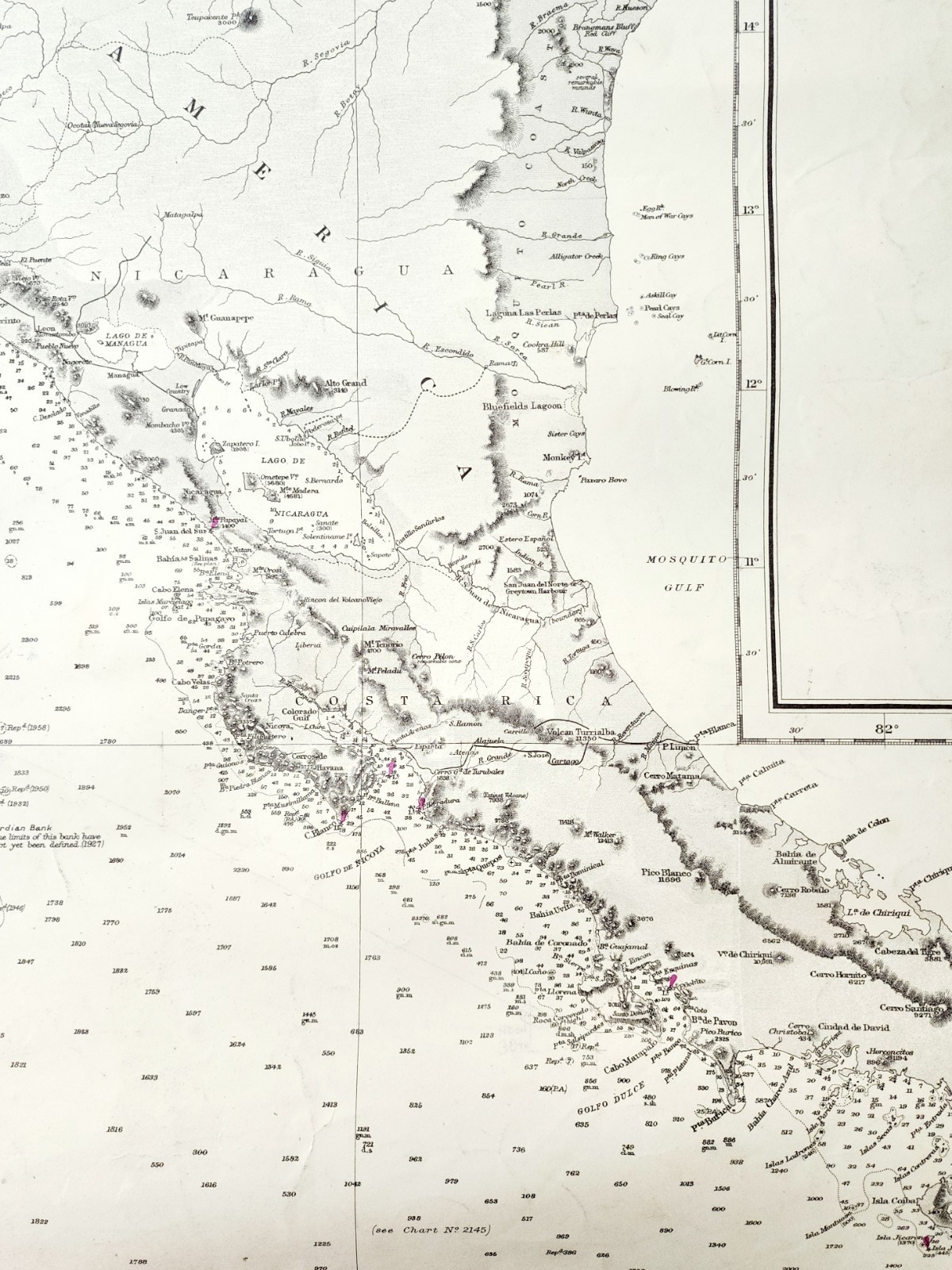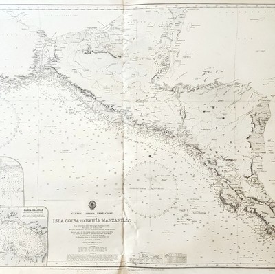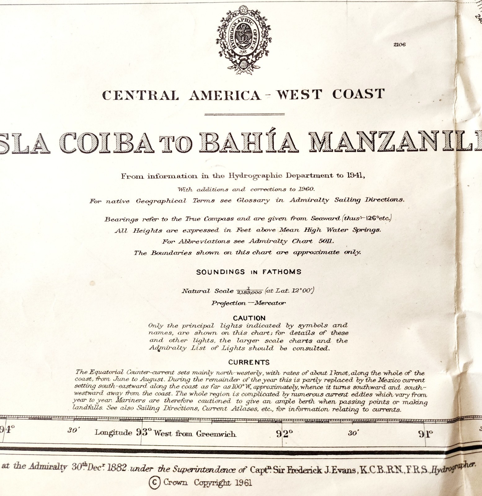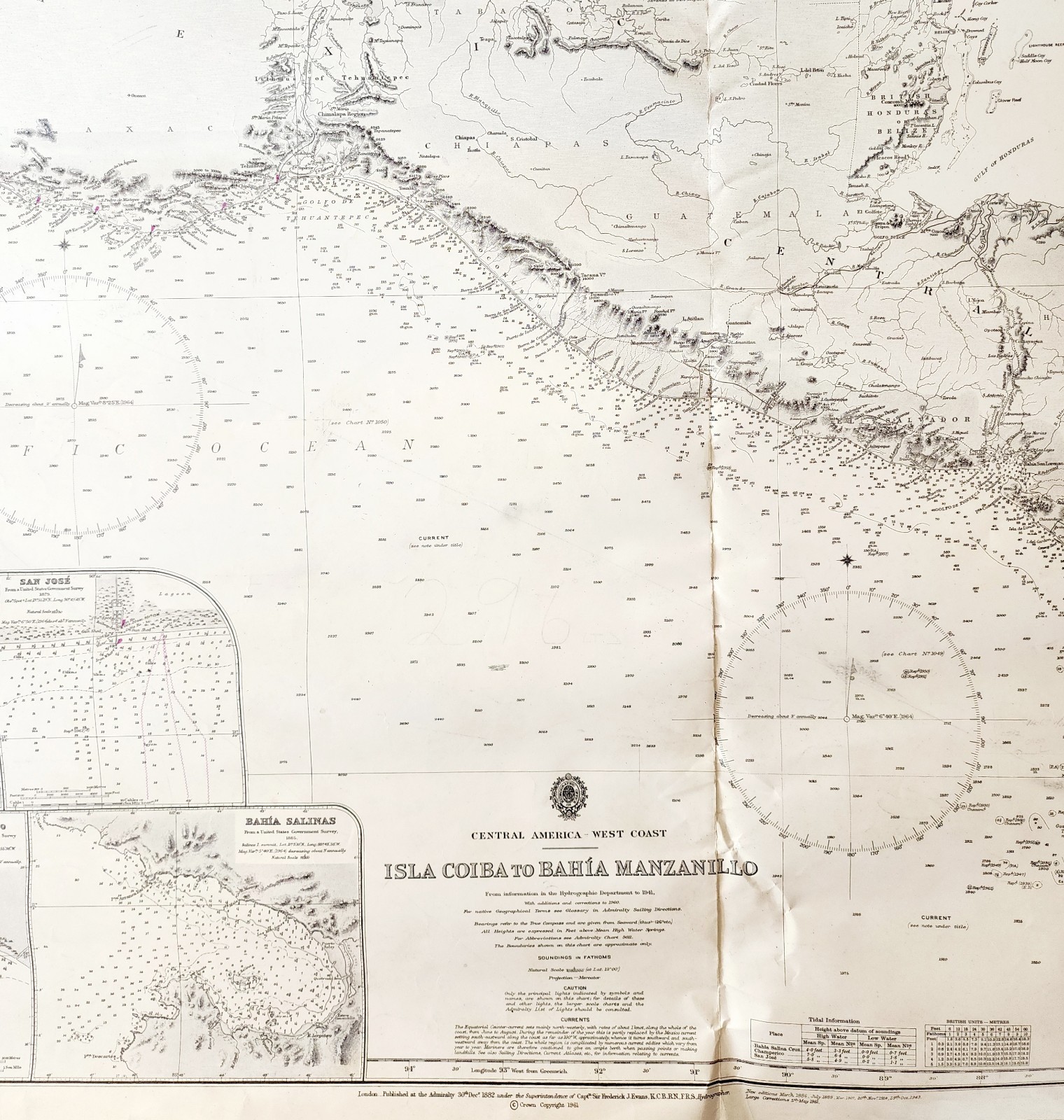 - 1970 Nautical Ship Map Isla Coiba To Bahia Manzanillo 50"x28" Sailing MAPS