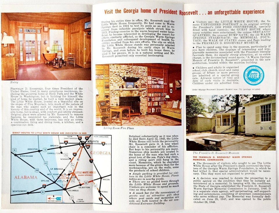 Primary image for 1970s Roosevelt's Little White House Warm Springs Georgia Brochure Vintage E8P