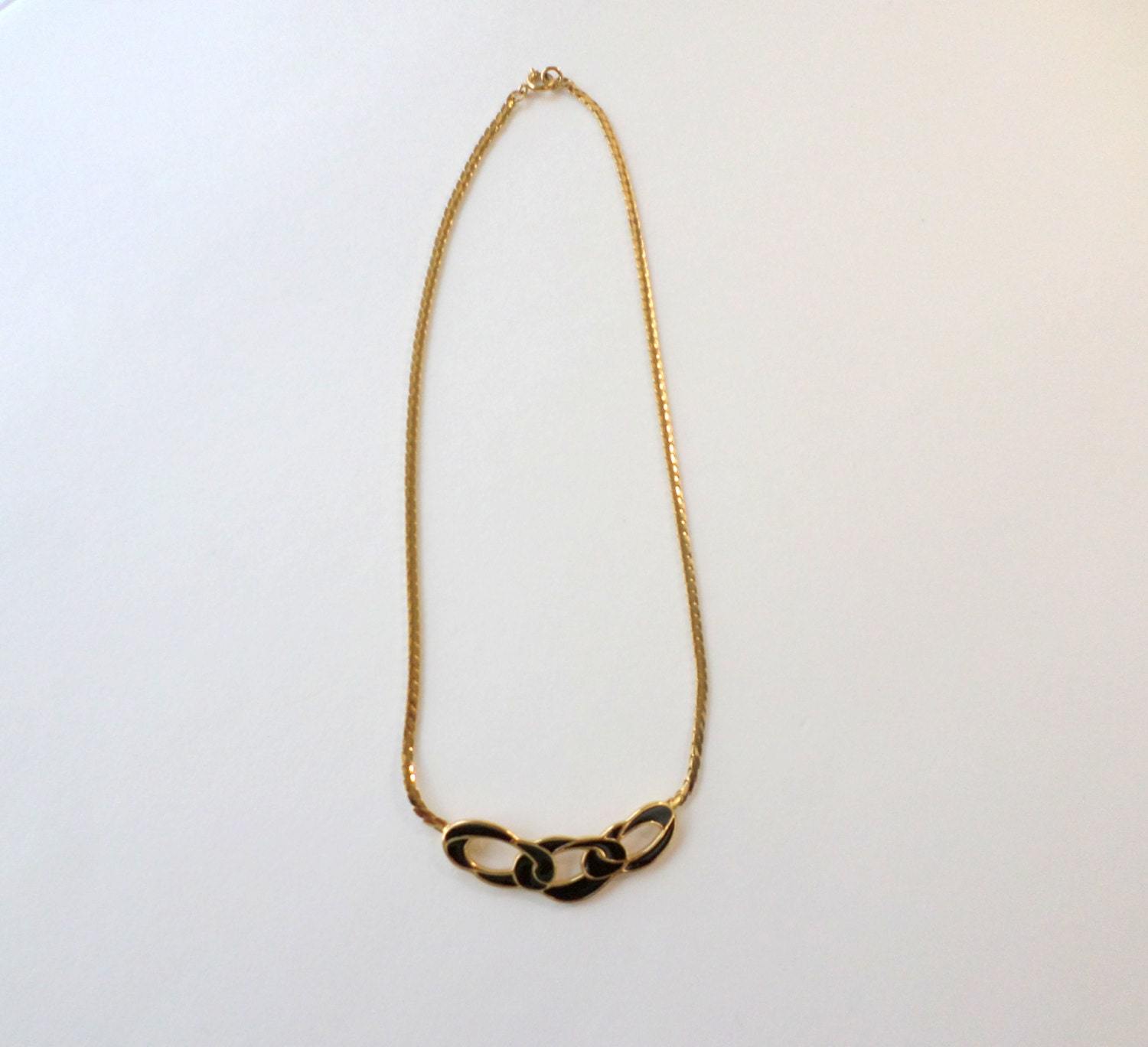 - 1970s Trifari Gold & Black Enamel Trifarium Plated Necklace