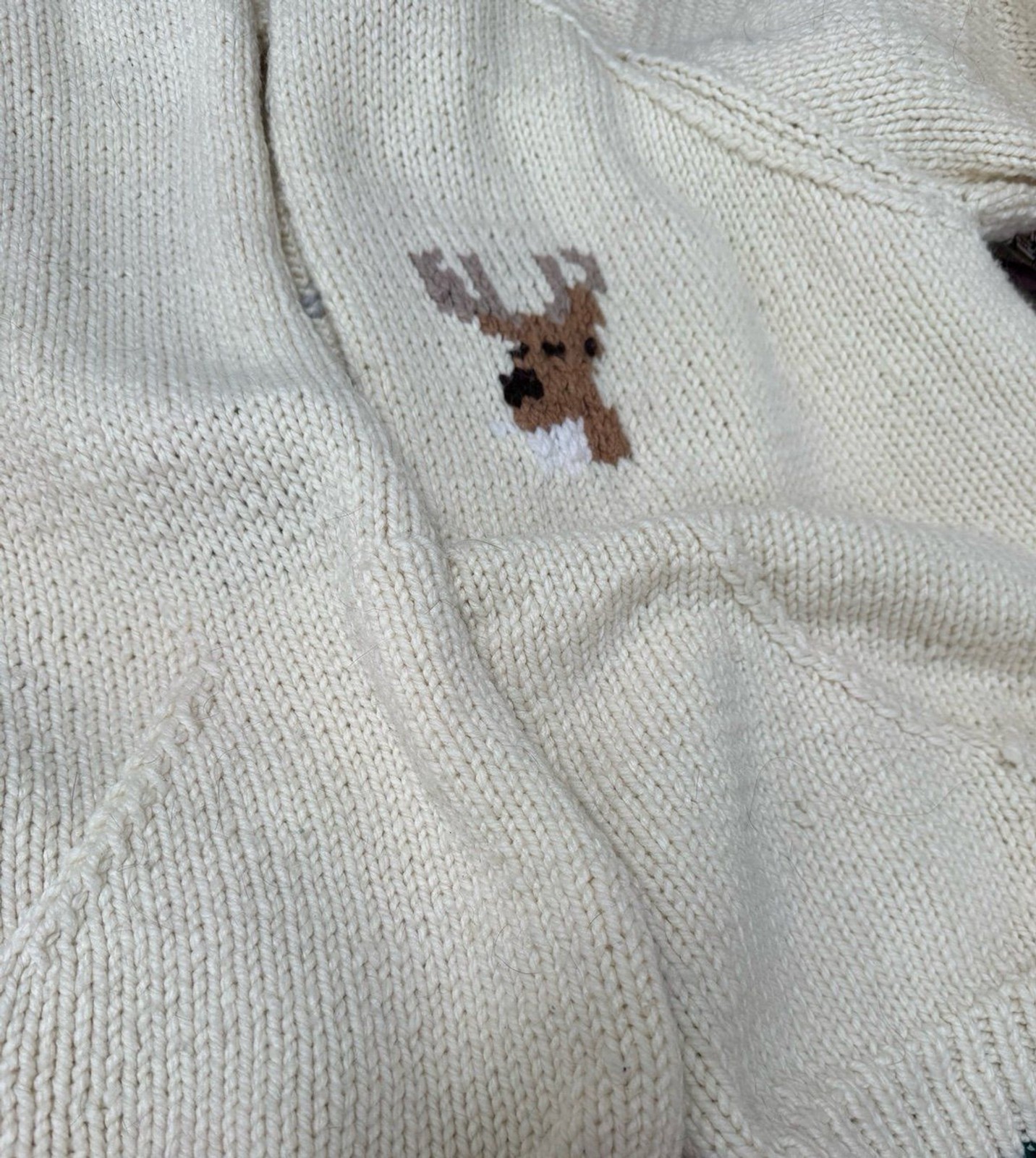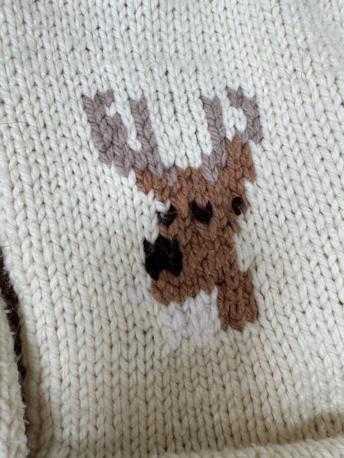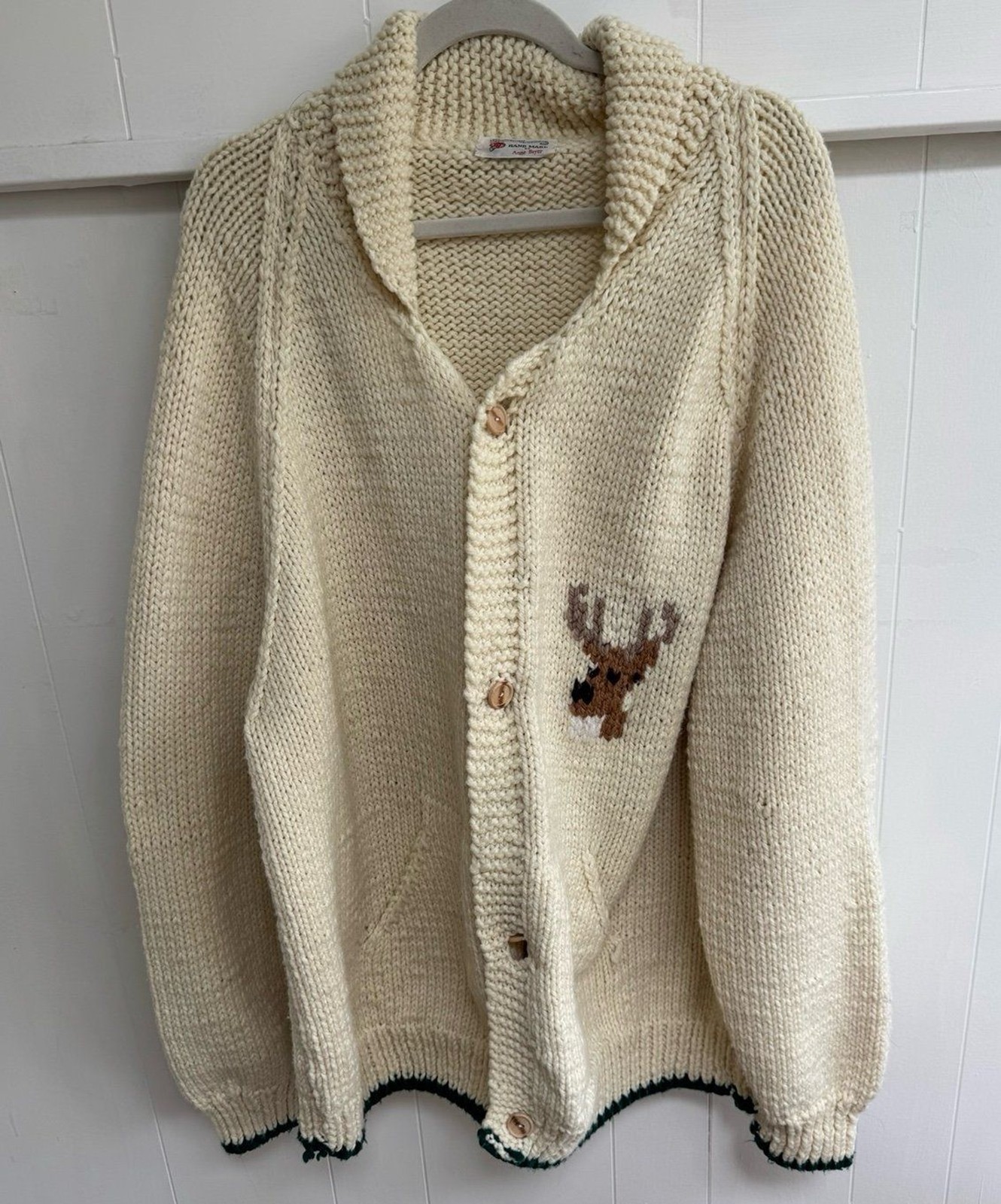 1970s Vintage Cream Whitetail Deer Buck Cowichan Wool Cardigan Sweater
