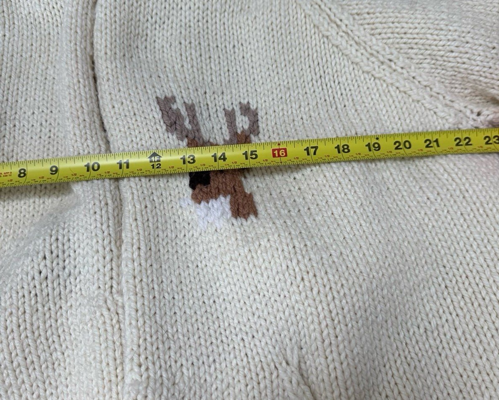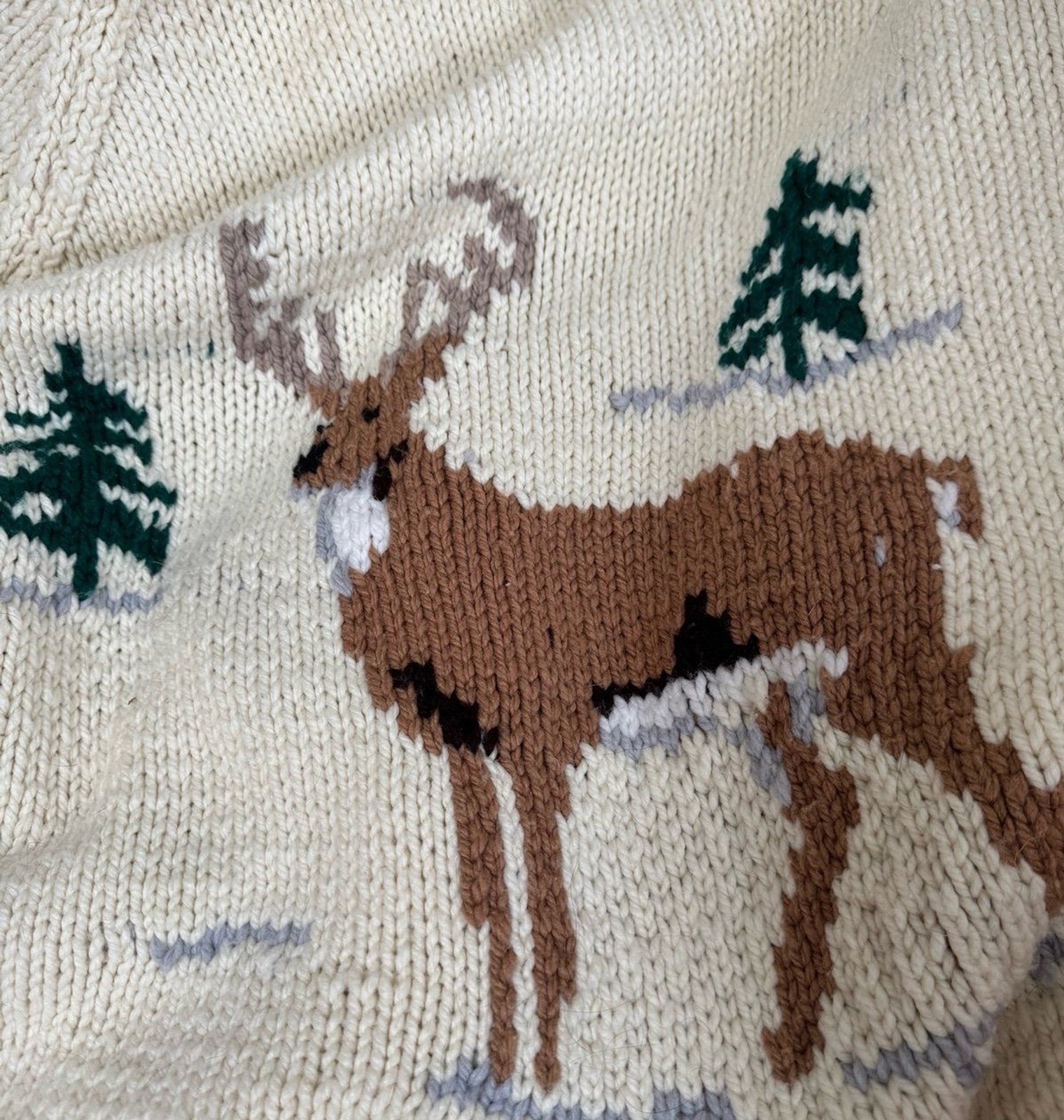 - 1970s Vintage Cream Whitetail Deer Buck Cowichan Wool Cardigan Sweater L XL
