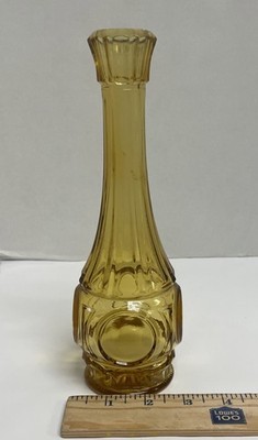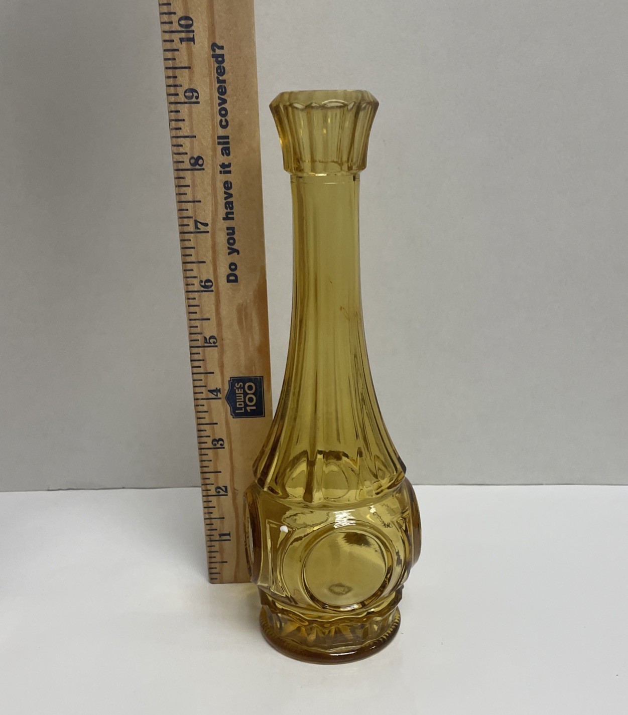 1970s Wheaton Glass Bullseye Amber Glass Vase Vessel Coin Motif Vase Vintage