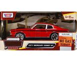 Brand new 1/24 scale diecast car model of 1971 Mercury Comet GT Red with Black Stripes "Forgotten Classics" Series die cast model car by Motormax. Brand new box. Real rubber tires. Detailed interior, exterior. Officially licensed product. Has opening hood and doors. Made of diecast with some plastic parts. Manufacturer's original unopened packaging. Dimensions approximately L-7.25, W-2.75, H-2.125 inches. Please note that manufacturer may change packing box at any time. Product will stay exactly the same.