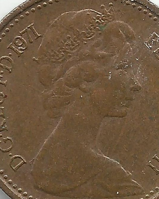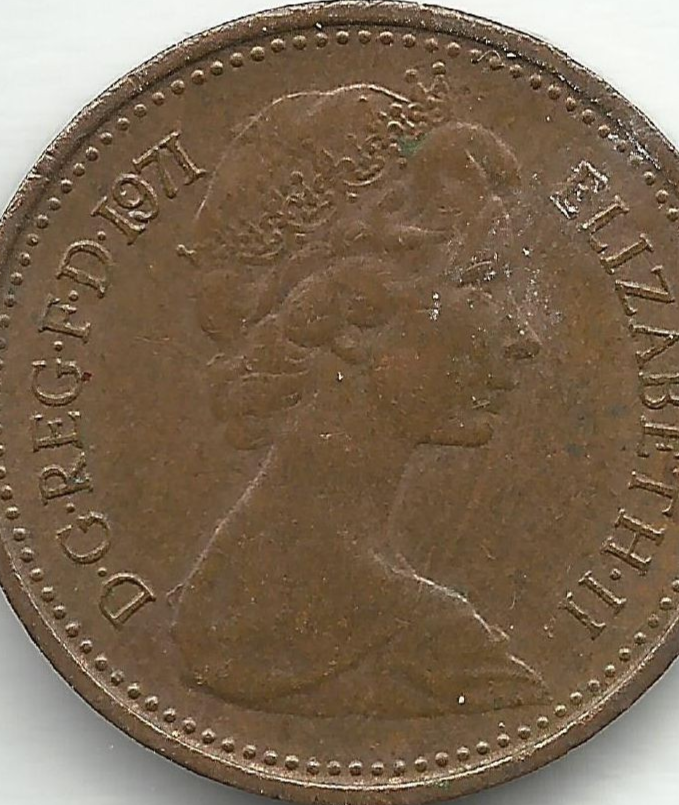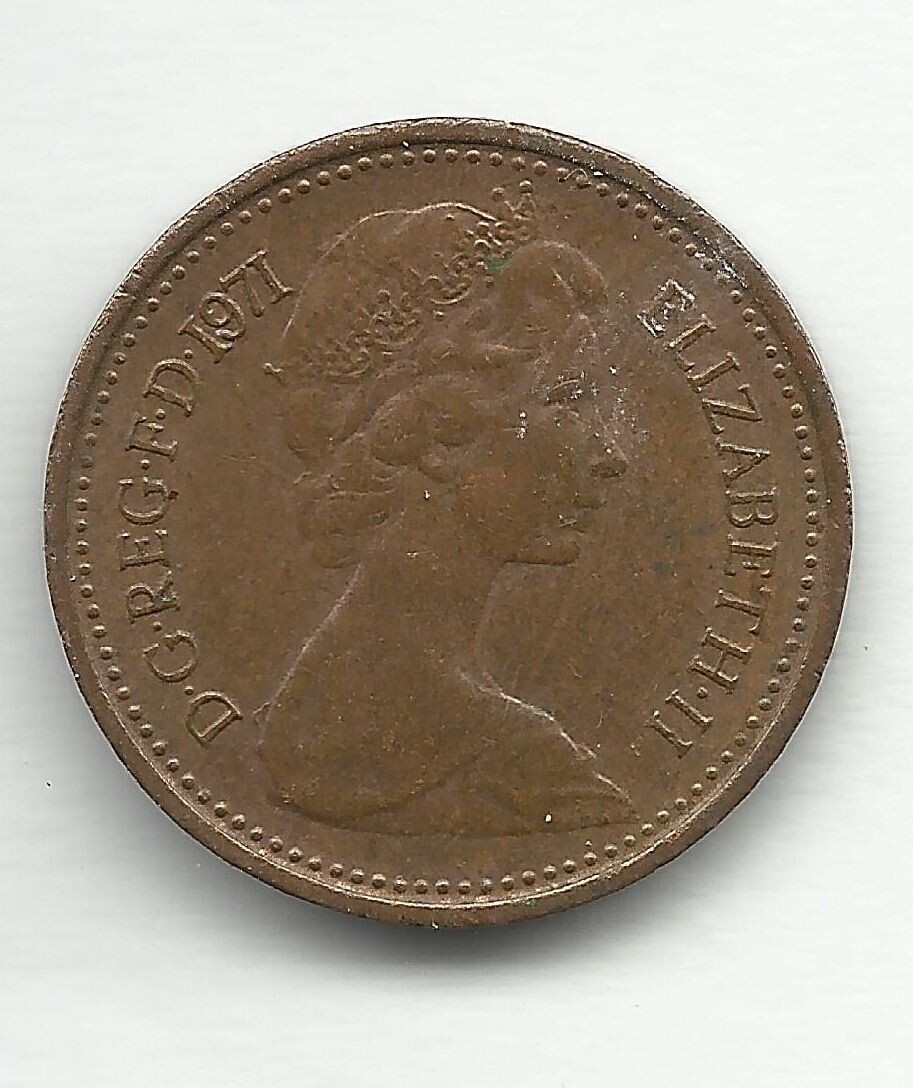 - 1971 United Kingdom 1/2 half New Penny UK great britain england Queen