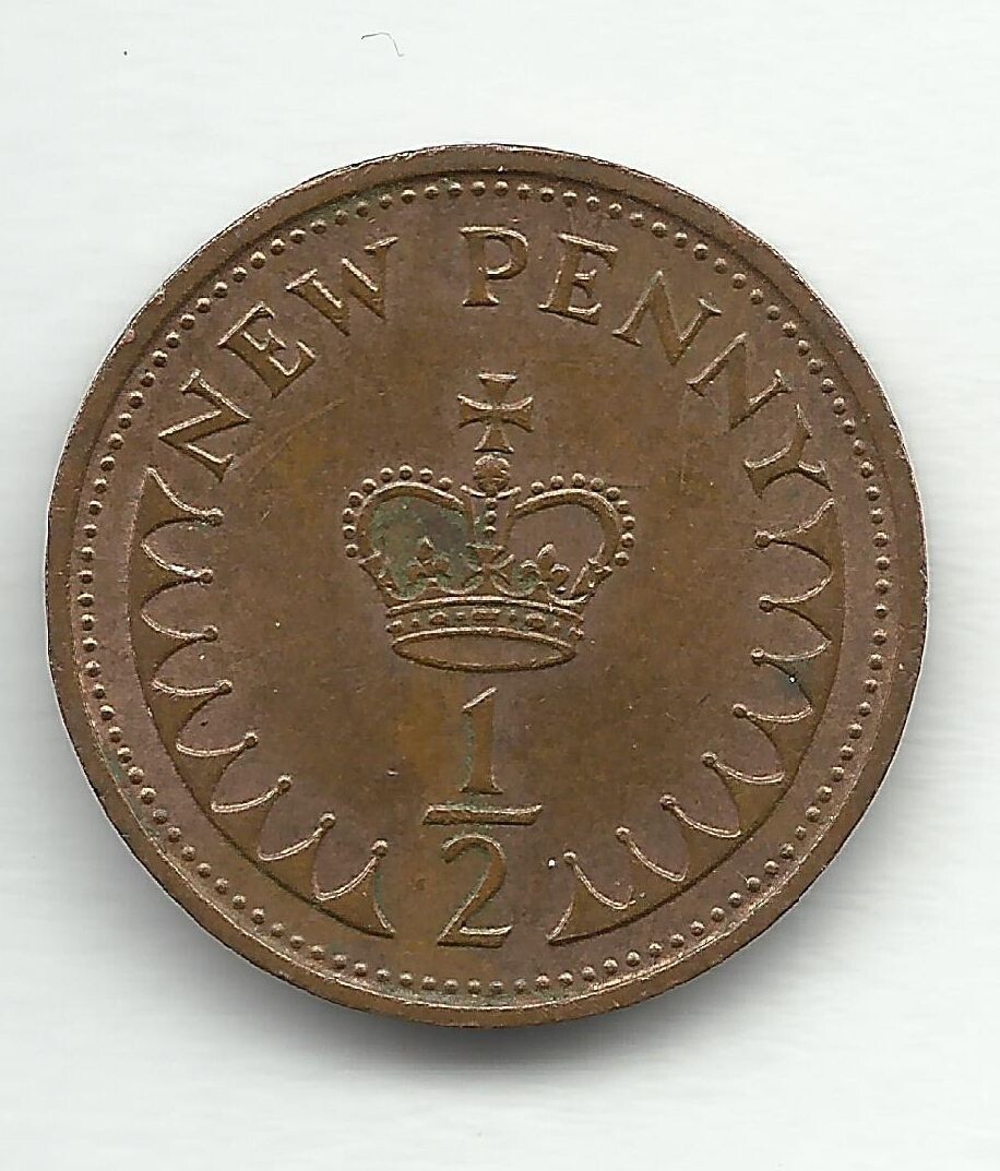 1971 United Kingdom 1/2 half New Penny UK great britain england Queen