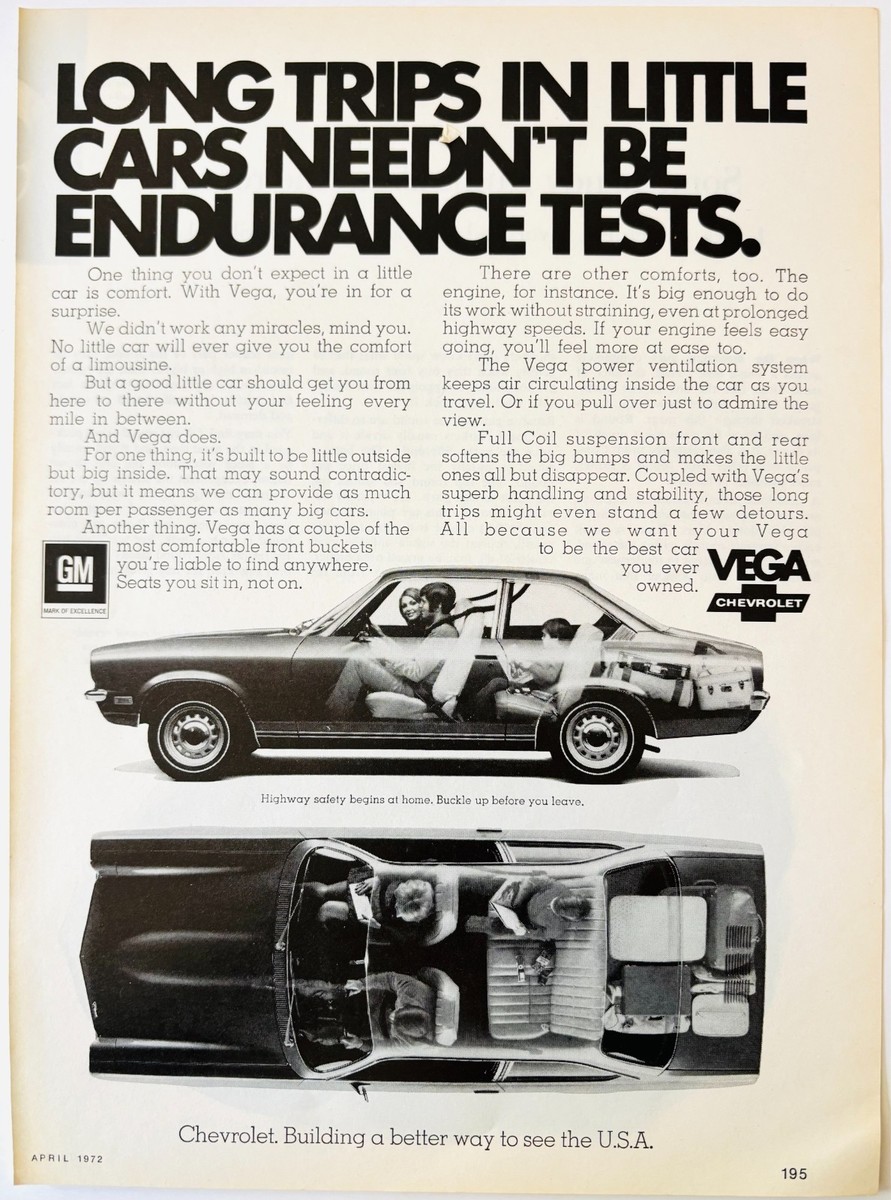 1972 Chevrolet Chevy Vega Advertisement Vintage Automobile 2 Door DWW10E