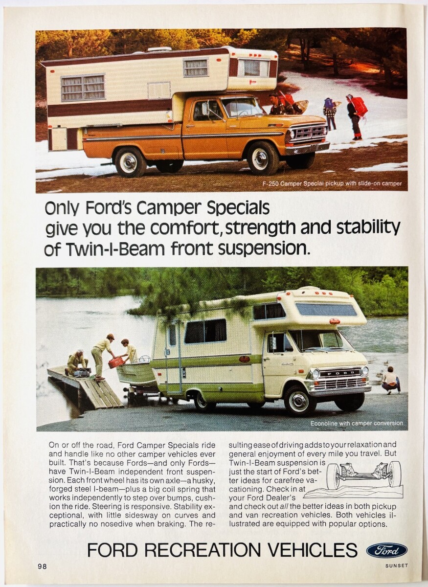 1972 Ford Campers Pickups Advertisement Vintage Automobile Econoline DWW10D