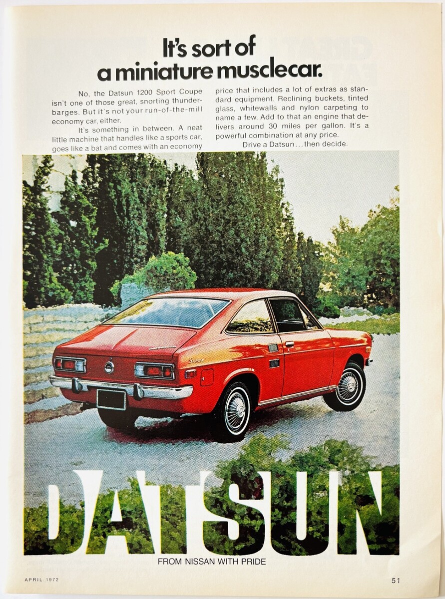 1972 Nissan Datsun Advertisement Vintage Automobile Sport Coupe 1200 DWW10D