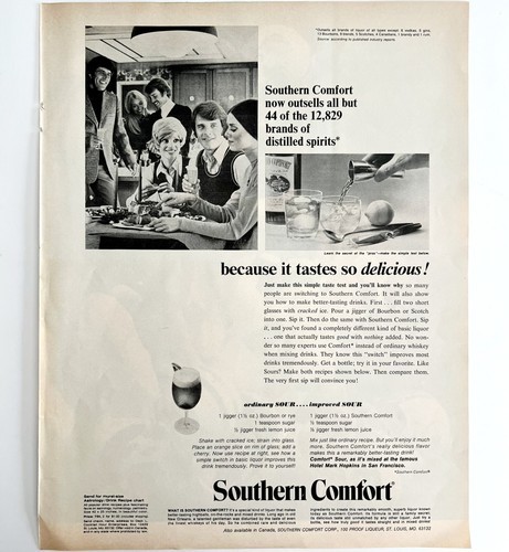 1972 Southern Comfort Advertisement Life XL Vintage Sour Recipe